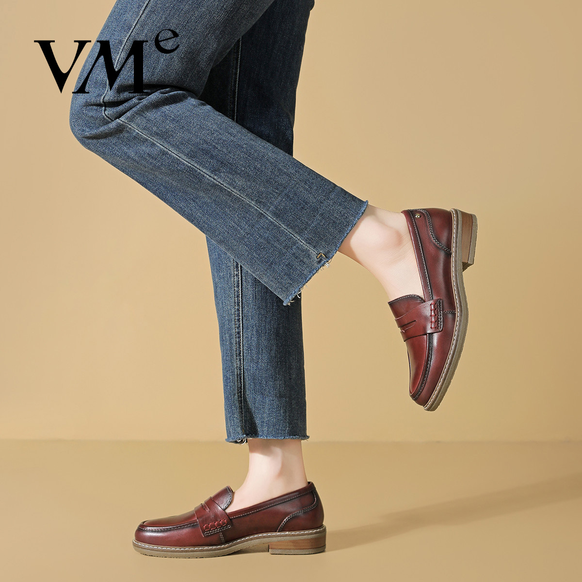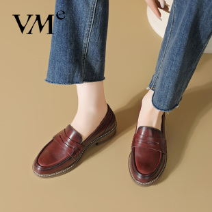 高级感方头真皮中跟单鞋 VME 2025秋冬新款 小皮鞋 舞魅女士配裙子