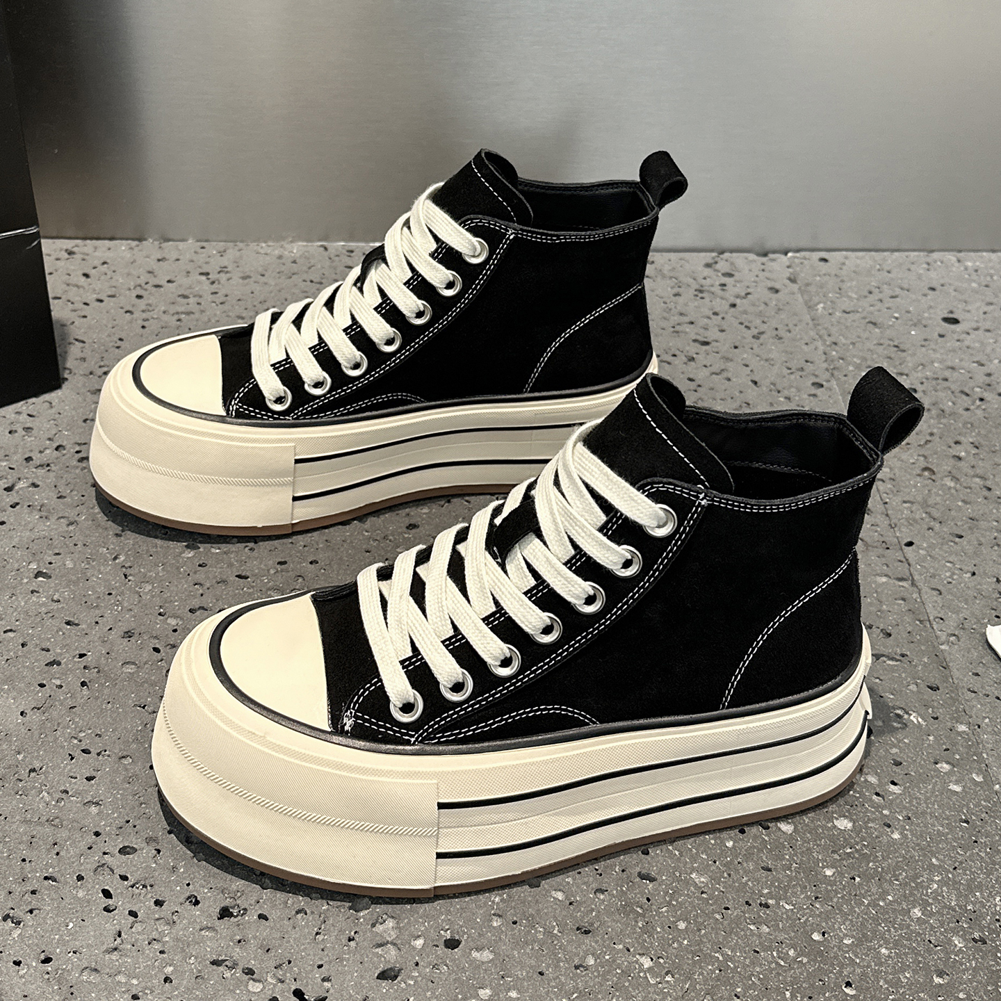 靴子 真皮防水厚底增高工装 森马马丁靴男秋季 高帮百搭休闲白色板鞋