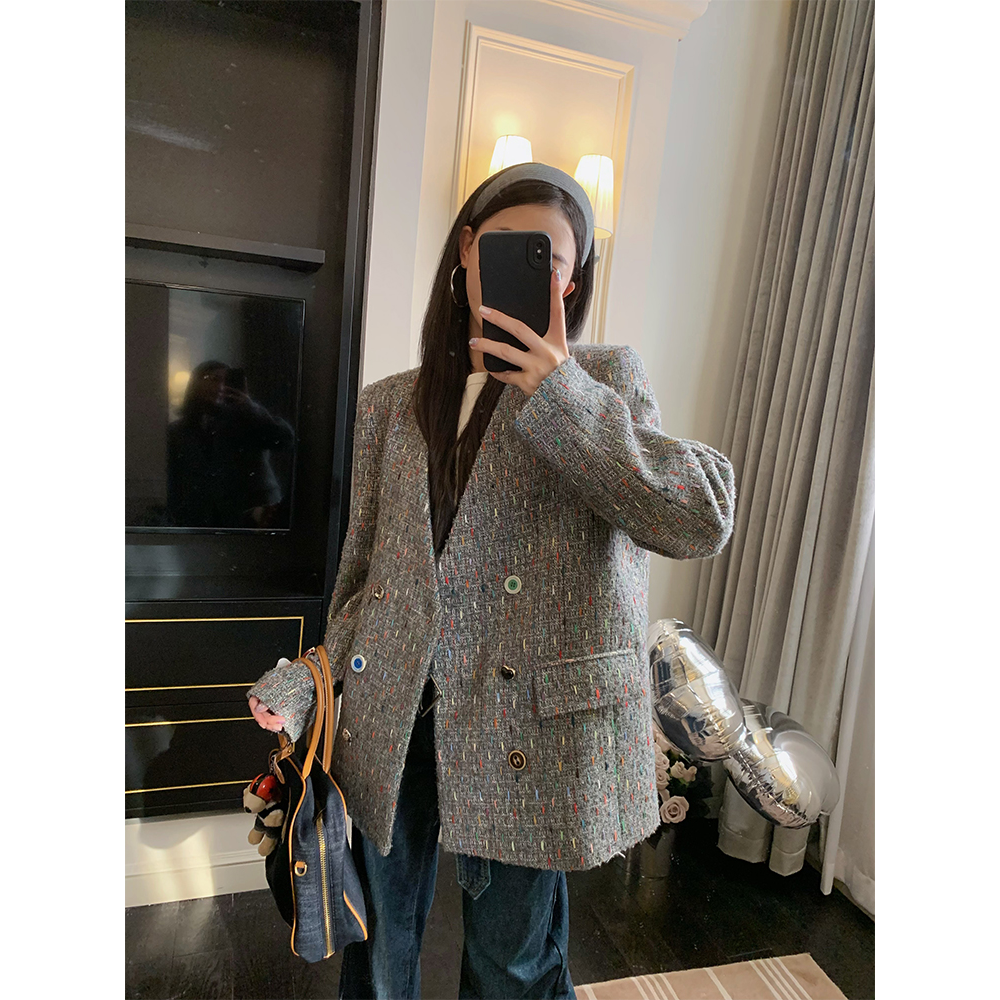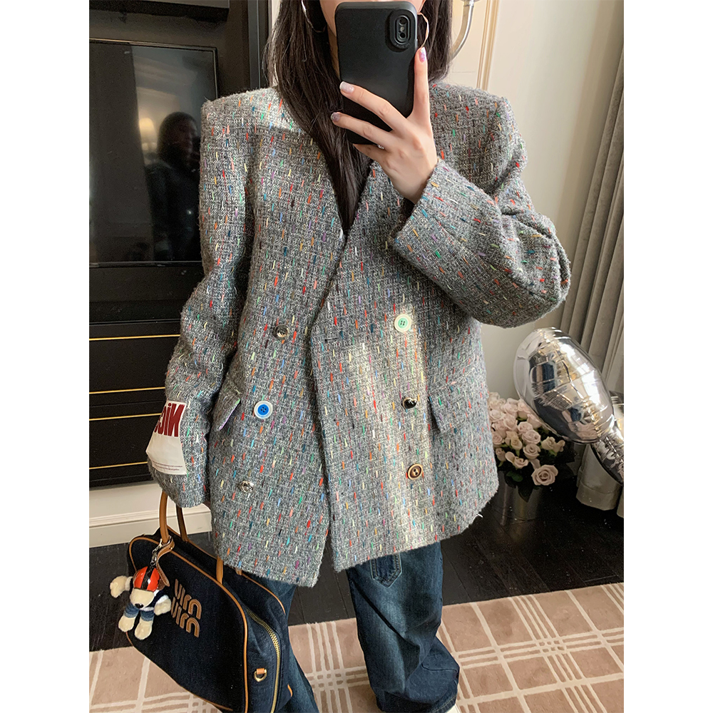 西装 爵莱菲大码 女羊毛韩版 新款 外套 小香风彩点粗花呢外套2025秋季