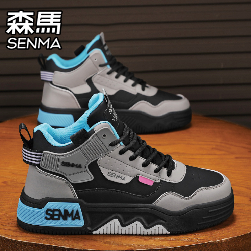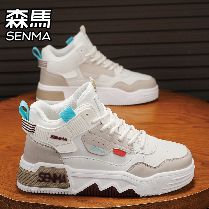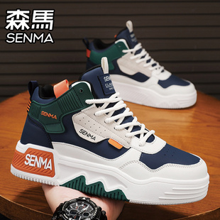 中帮运动厚底增高潮鞋 皮面防水百搭休闲小白板鞋 秋季 森马高帮男鞋