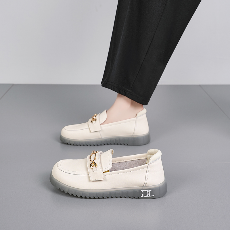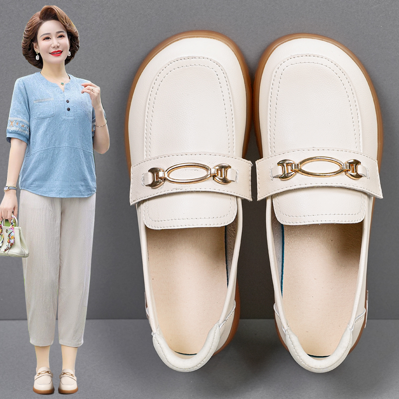 软底妈妈乐福鞋 宽胖脚女鞋 春秋胖脚丫豆豆鞋 41到43中老年单鞋 大码