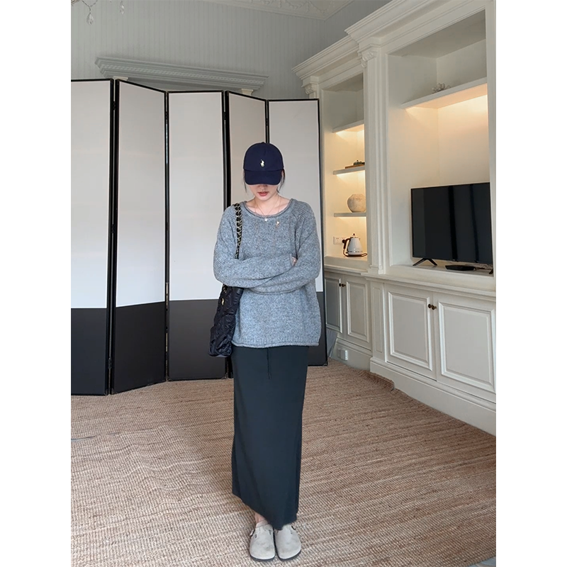 百搭上衣显瘦半身裙 宽松卷边毛衣秋季 郭九九呢 羊毛慵懒感插肩袖