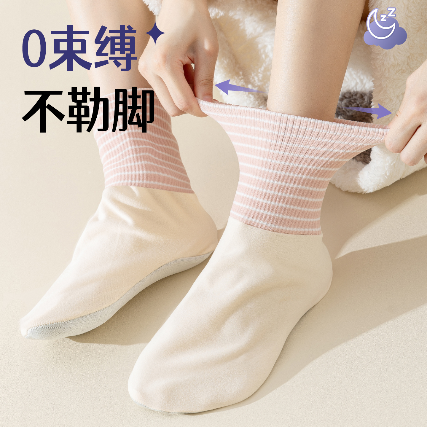 晚上睡觉穿 保暖地板空调袜 袜子女宽松口不勒脚睡眠专用袜秋冬款