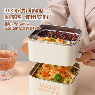 304不锈钢多层饭盒上班族带饭便当盒pp可微波加热带勺子便携餐盒