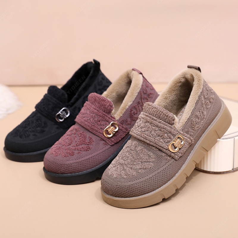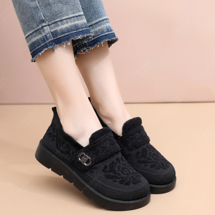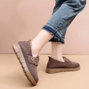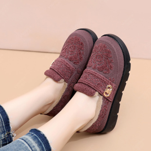 女中老年妈妈鞋 官方旗舰防滑一脚蹬棉鞋 加绒保暖老人鞋 意迪森冬季