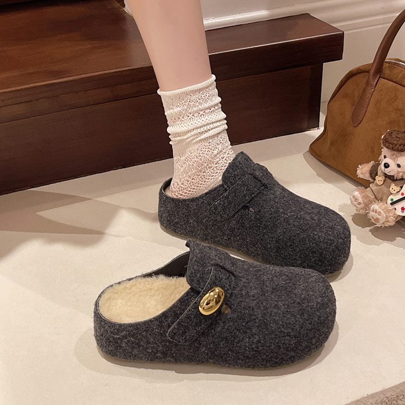 真皮 一脚蹬懒人博肯鞋 春秋勃肯鞋 女包头孕妇半拖外穿2025复古新款