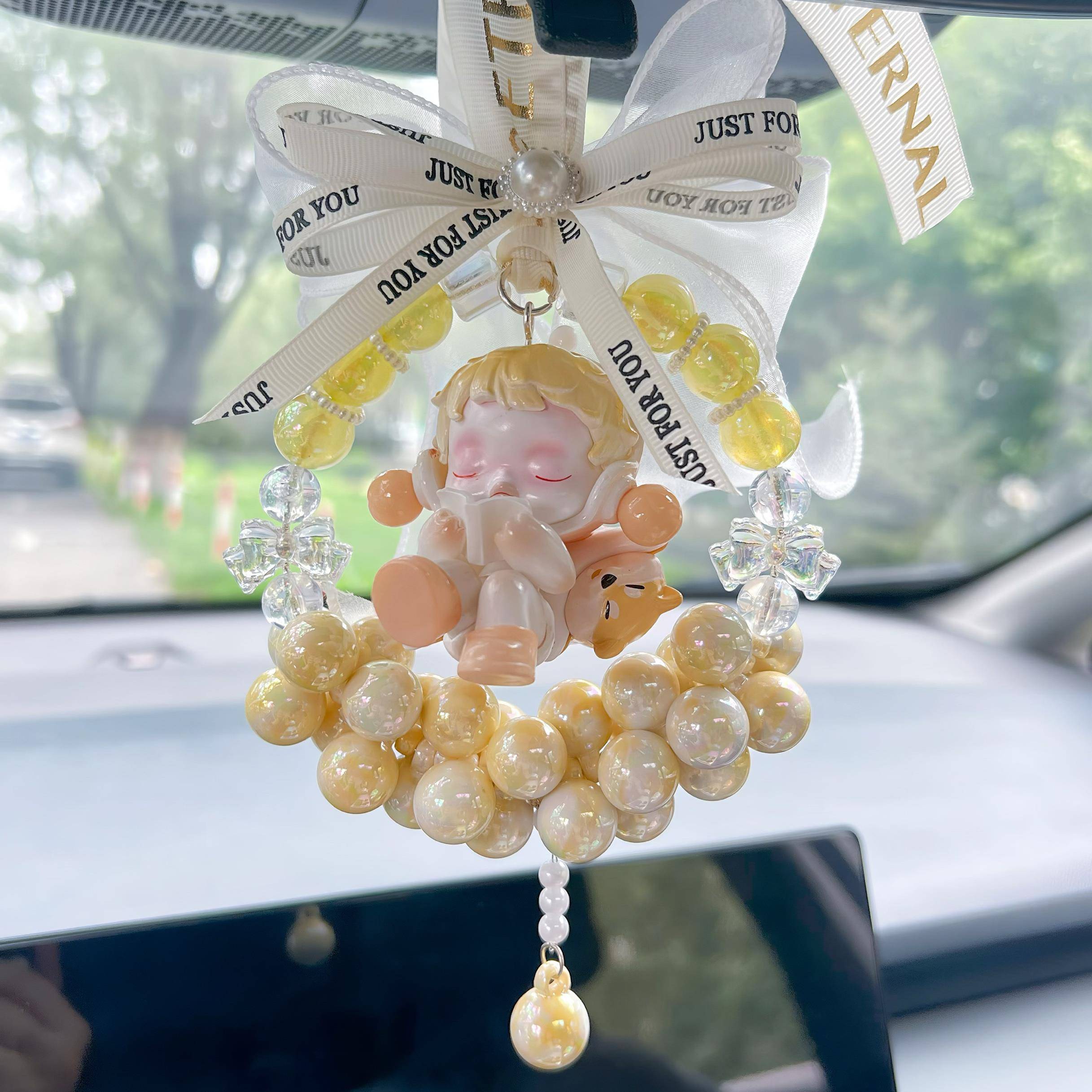 适用于 饰后照镜蝴蝶结高级感礼品diy手 于泡泡温度sp玛特汽车挂装