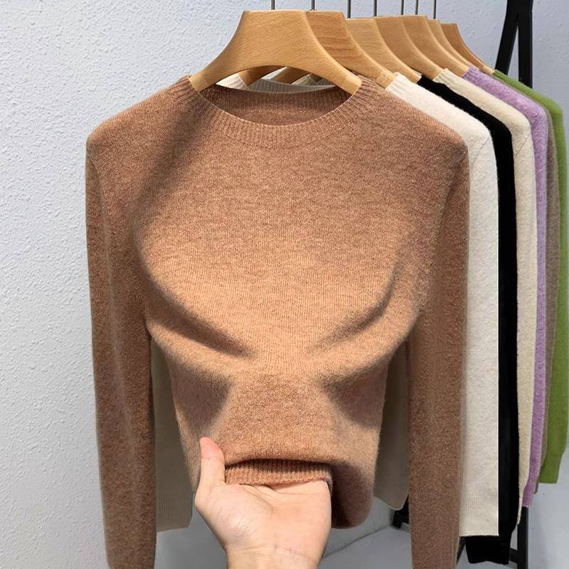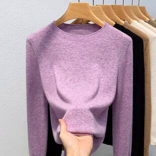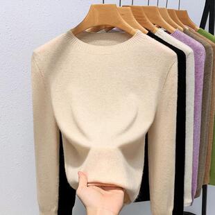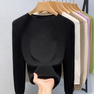 上衣1010c 不起球毛衣洋气内搭打底衫 黑色圆领针织衫 女冬修身