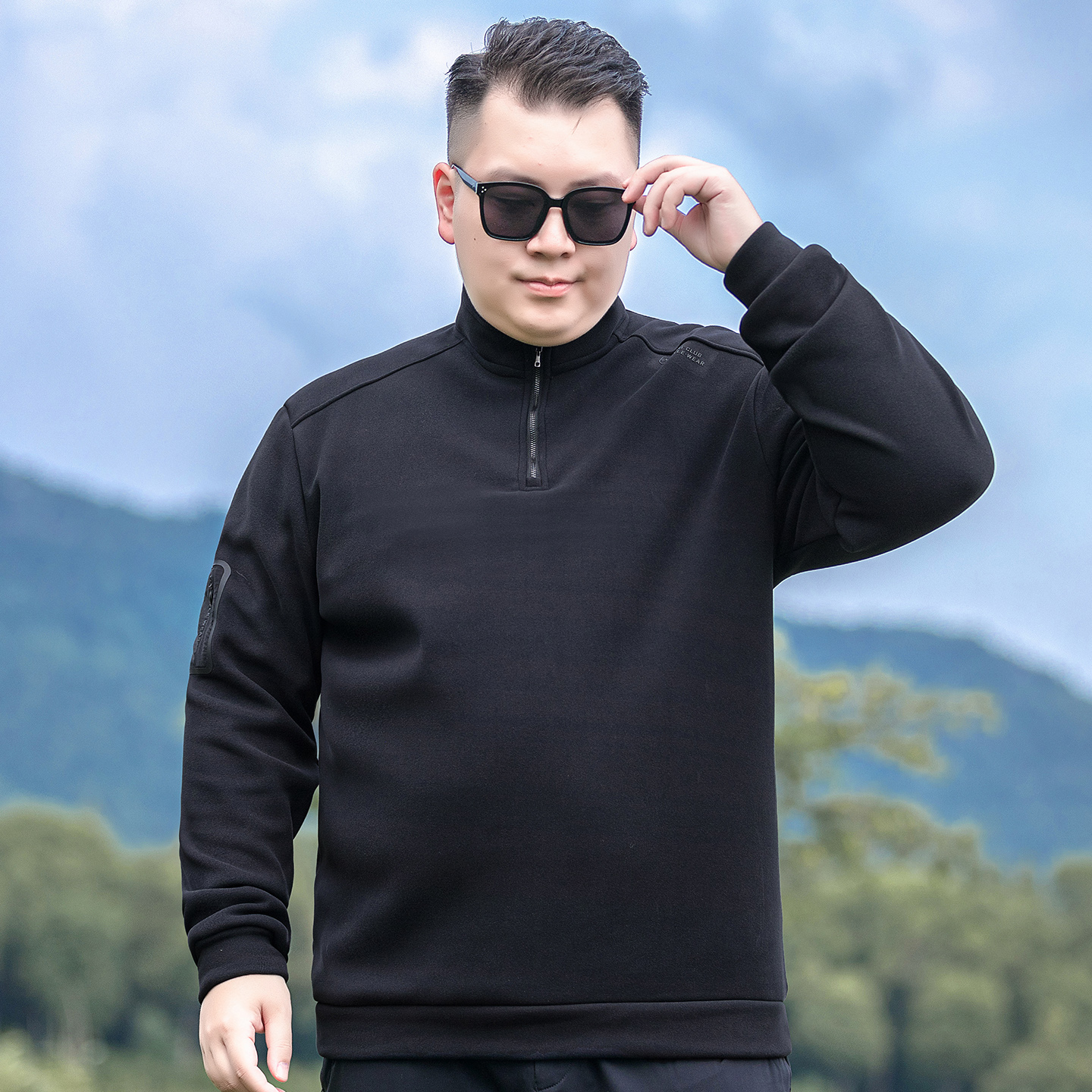 外穿加绒上衣胖子加厚保暖打底衫 冬季 大码 套头半高领拉链卫衣男士