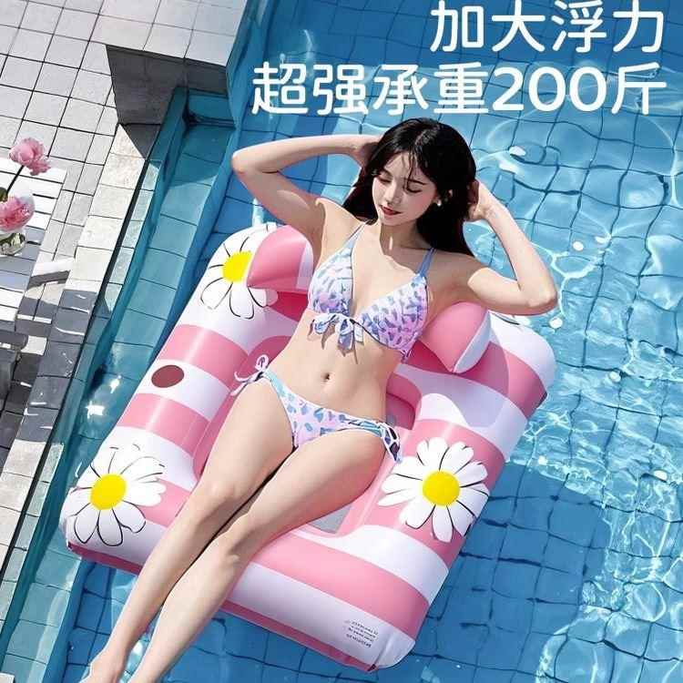 水上浮床充气浮排漂浮气垫网红游泳圈躺椅泳池沙发海上戏水玩具垫