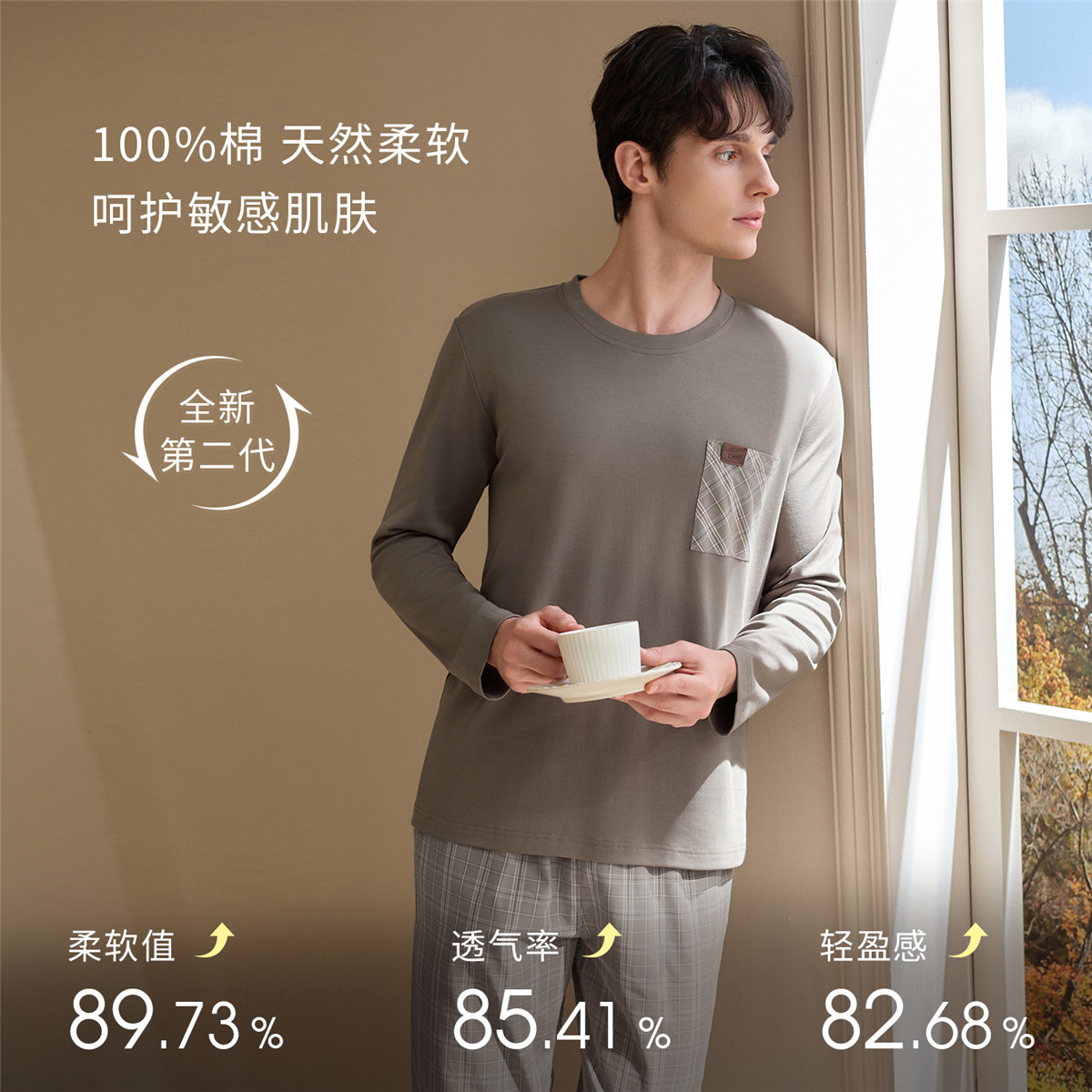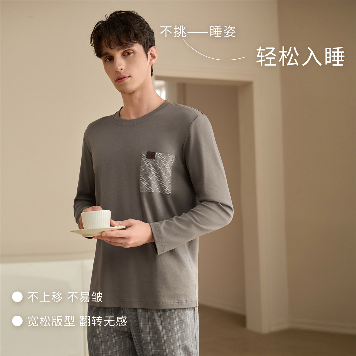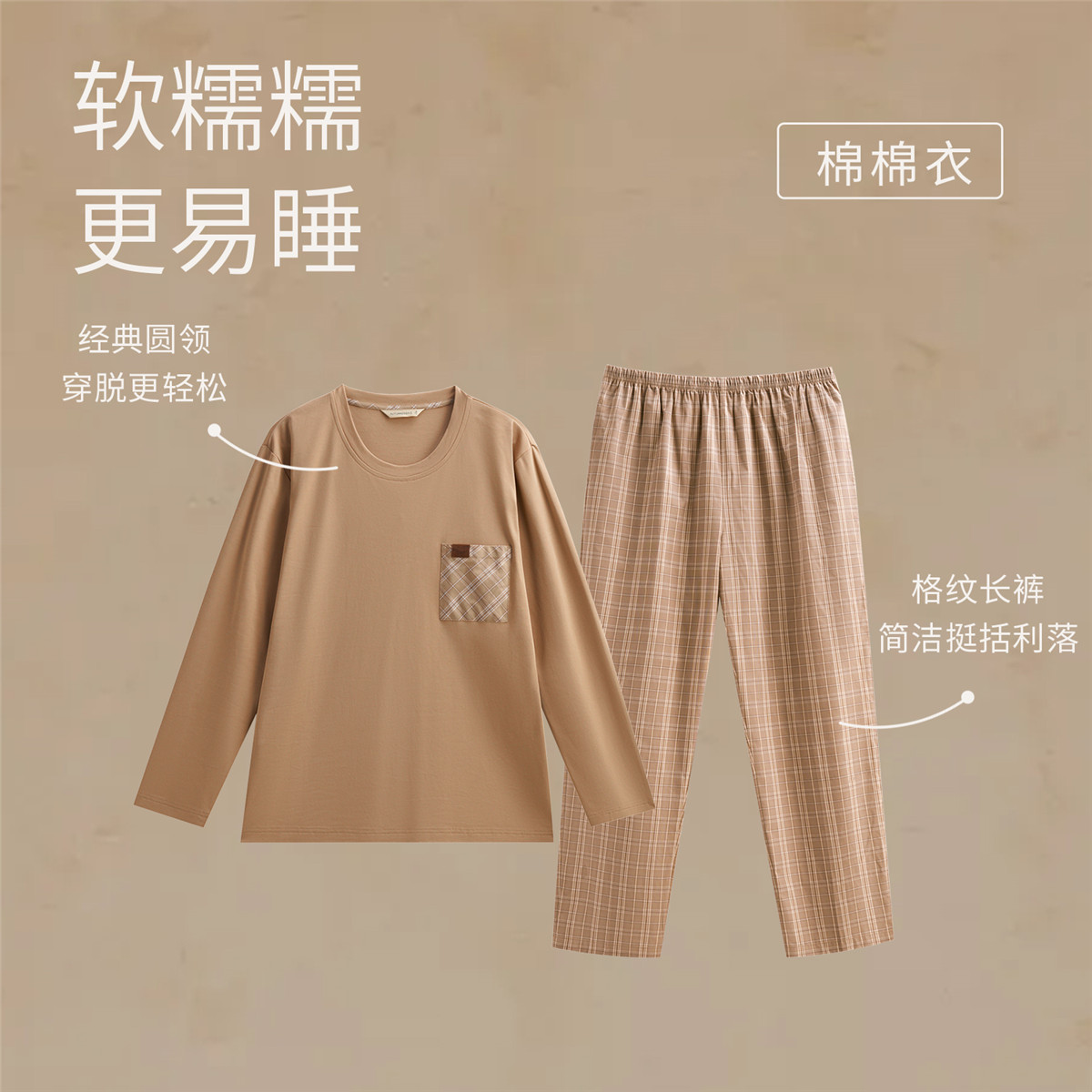 睡衣套装 秋鹿棉棉衣25年新款 长袖 春秋冬季 男可外穿家居服 睡衣男士
