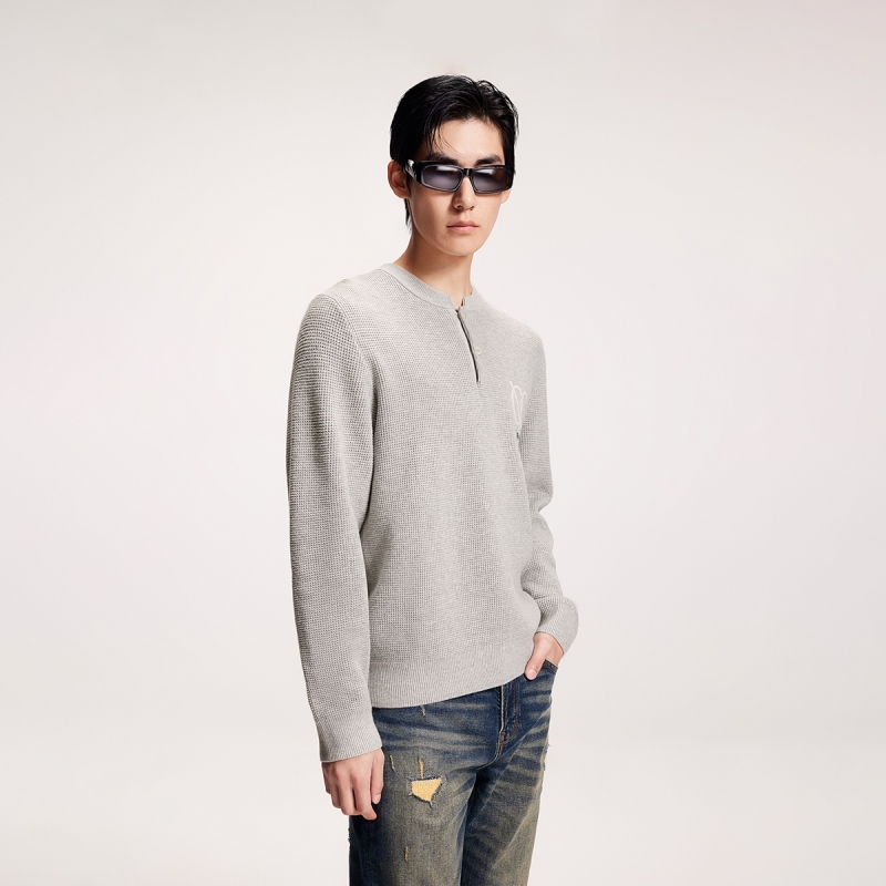 解构慵懒风立领毛衣外套 美式 V37老钱风复古双拉链针织开衫 男秋季