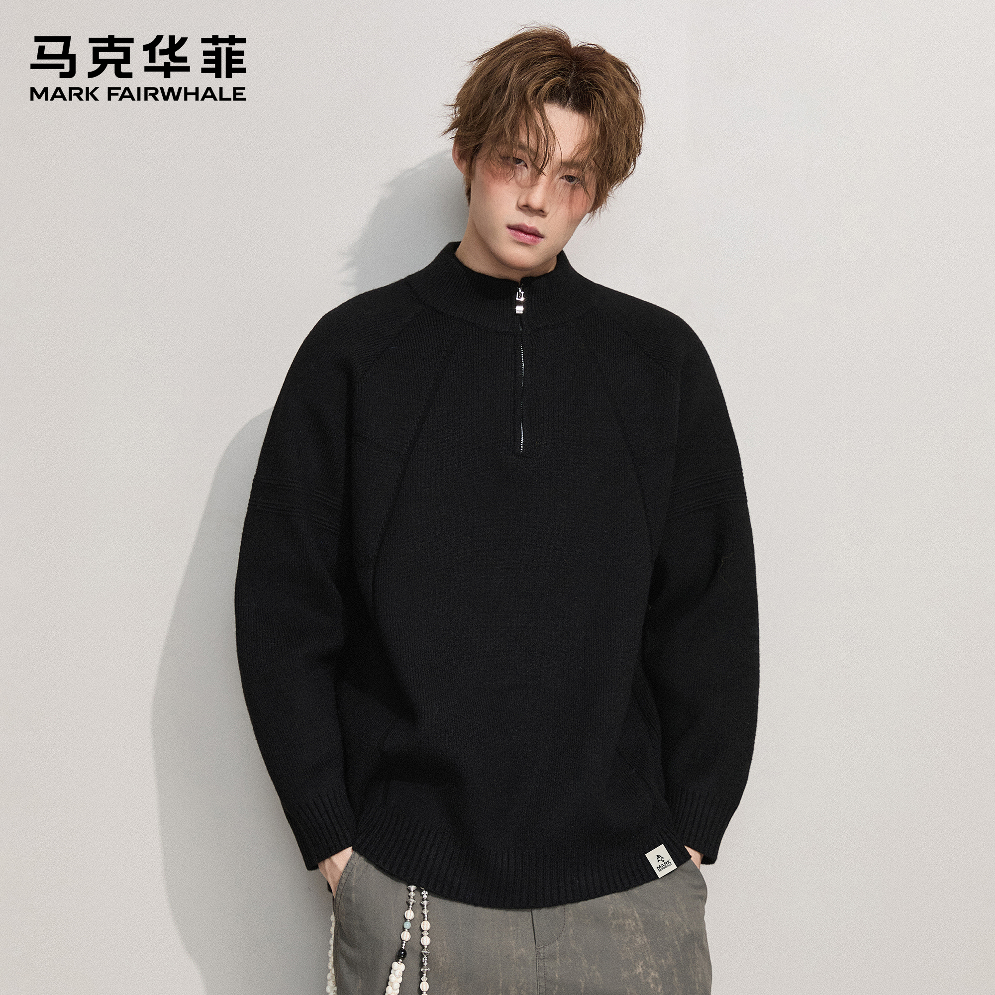 纹全羊毛套头针织衫 枫竺智性风格 女秋冬内搭毛衣 假两件Polo领