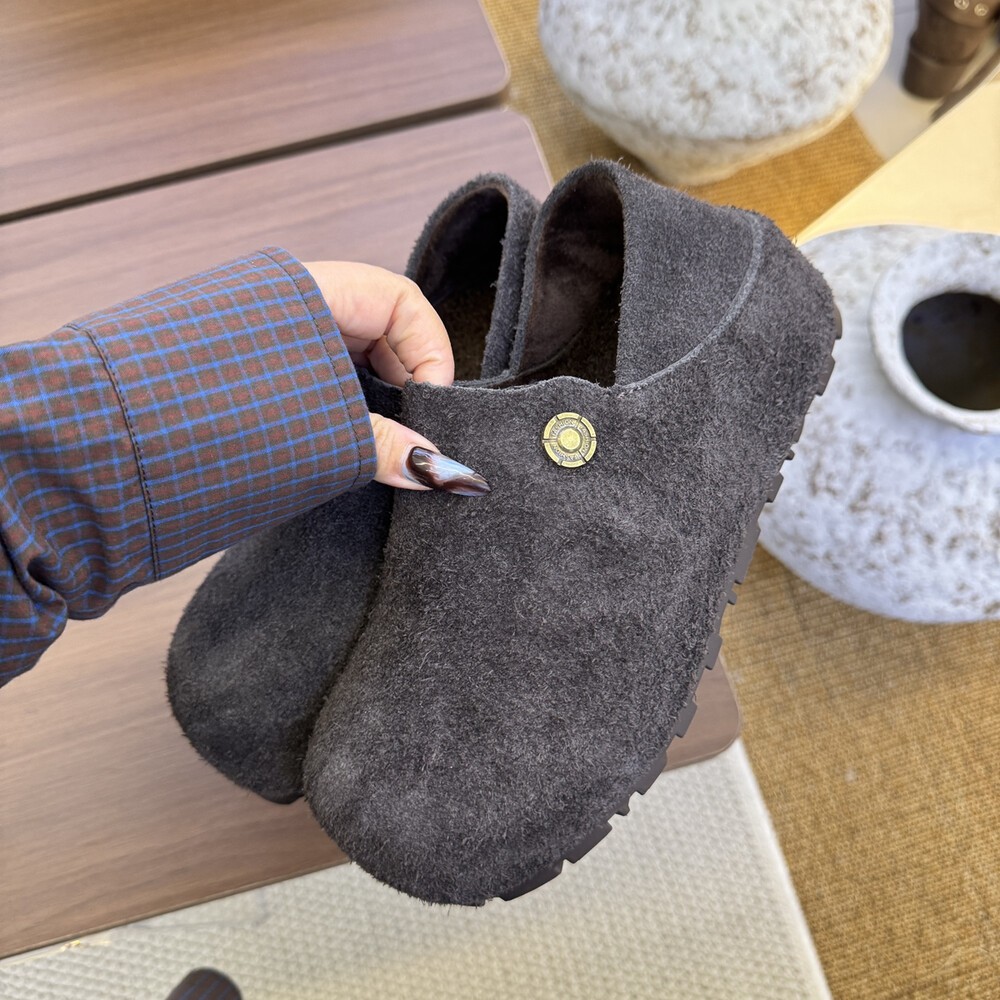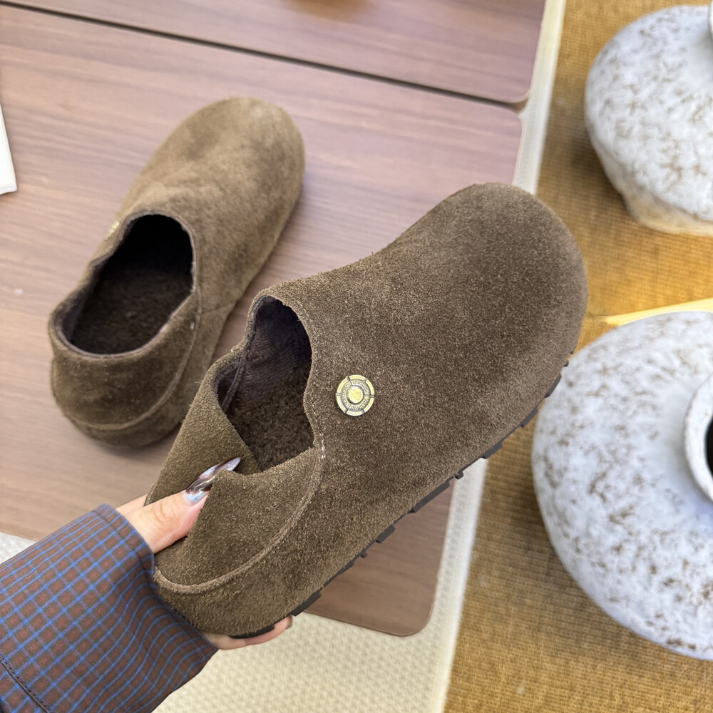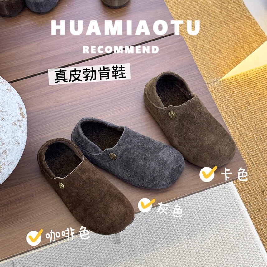 秋冬加绒厚底内增高一脚蹬单鞋 女两穿2025新款 全包勃肯鞋 真牛皮