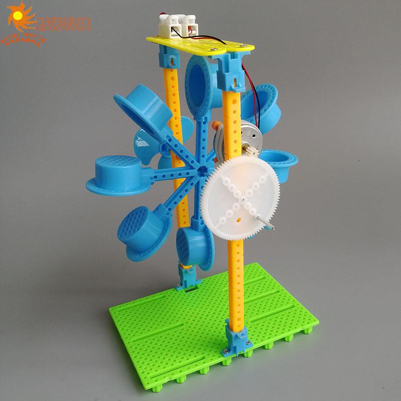 科技小制作小发明 水车手摇发电机能量转换实验 DIY水力发电模型
