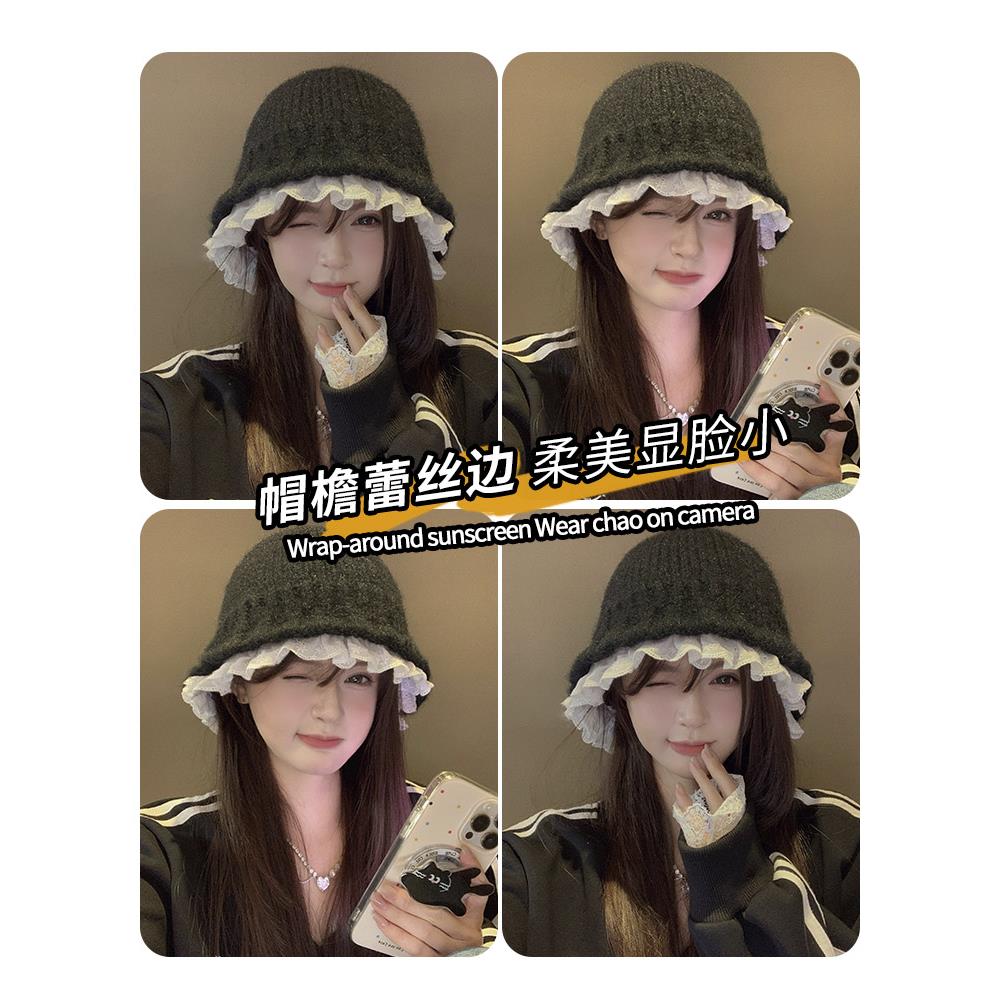 韩系黑色堆堆帽子女款 素颜遮脸颊包头帽大头围显脸小冷帽 2025新款
