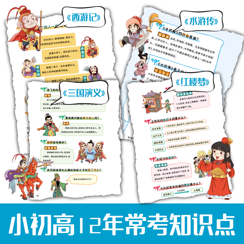 四大名著千千问中小学生文学常识知识点汇总漫画解读一千问西游记水浒传三国演义红楼梦历史科普读物文学常识必考知识点课外阅读书