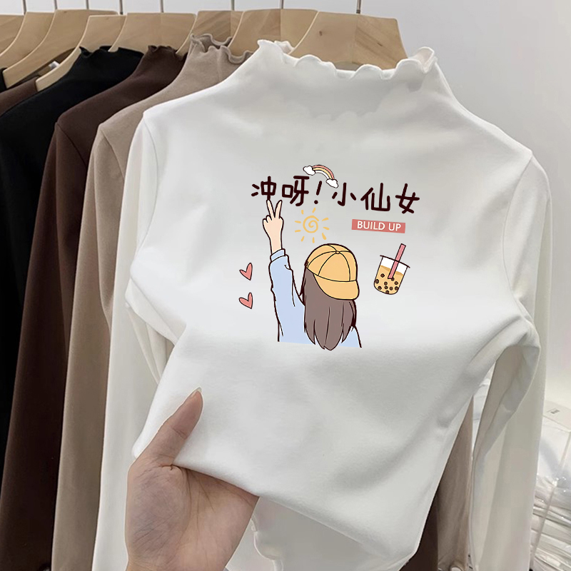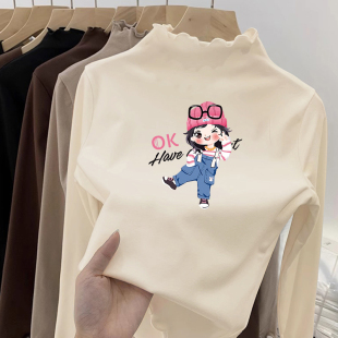 新款 女童德绒秋冬装 T恤木耳边打底衫 宝宝长袖 春秋儿童上衣潮 童装