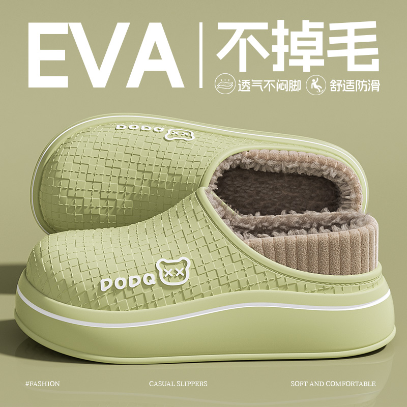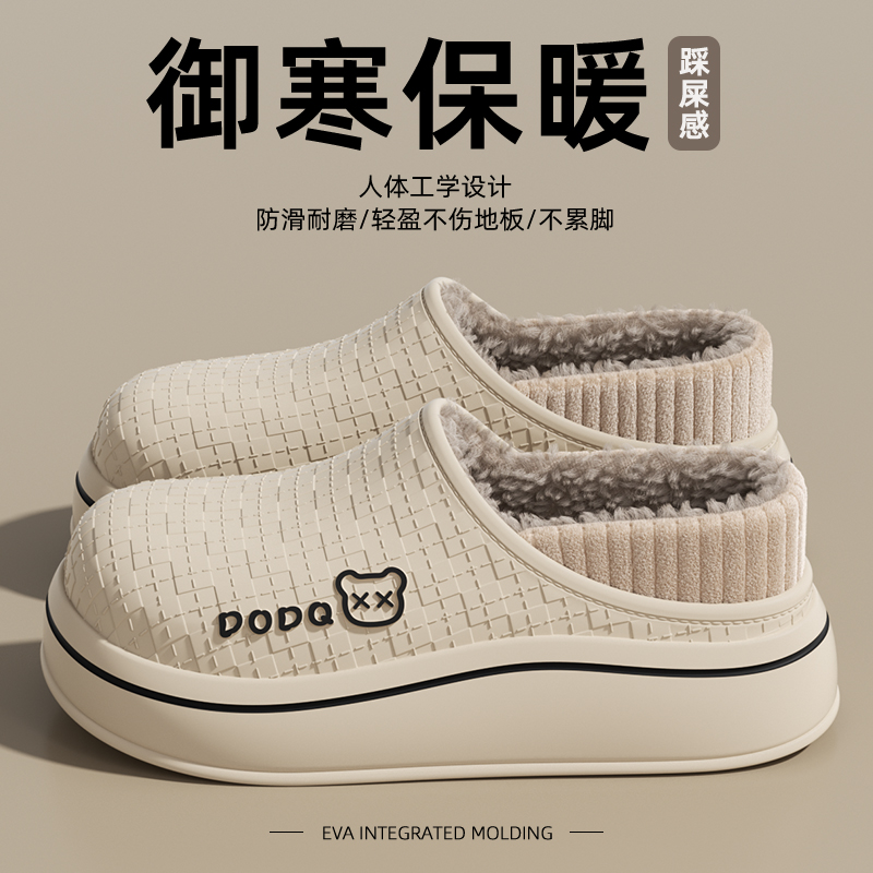 防滑防水外穿男加绒 户外室内全包跟加棉拖鞋 踩屎感棉鞋 女士秋冬季