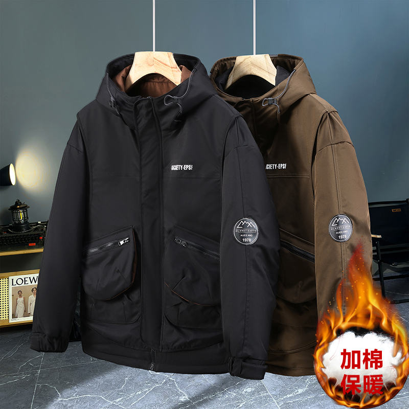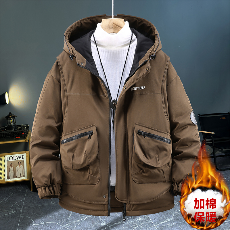 秋冬季 潮牌帅气百搭夹克 棉袄外套男立领潮流加绒加厚棉衣棉服韩版