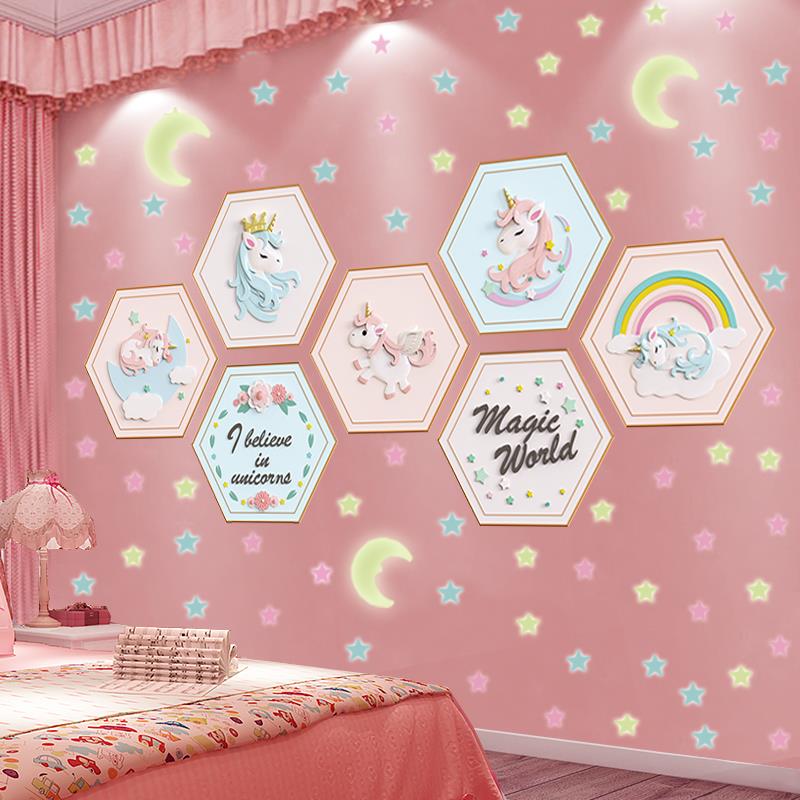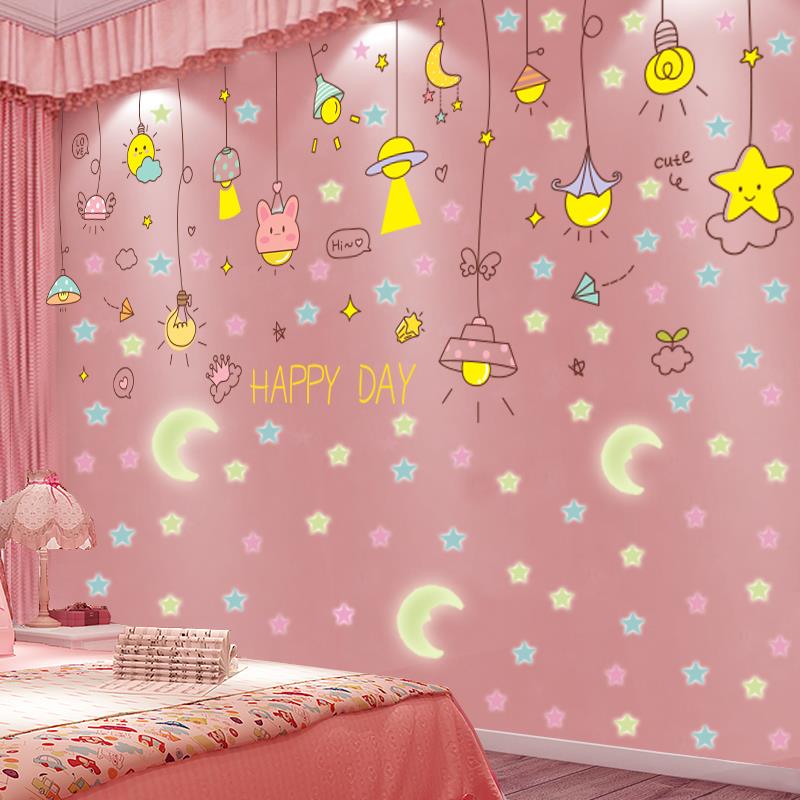3D立体墙贴夜光星星卧室温馨天使翅膀贴纸装 饰小图案房间布置自粘