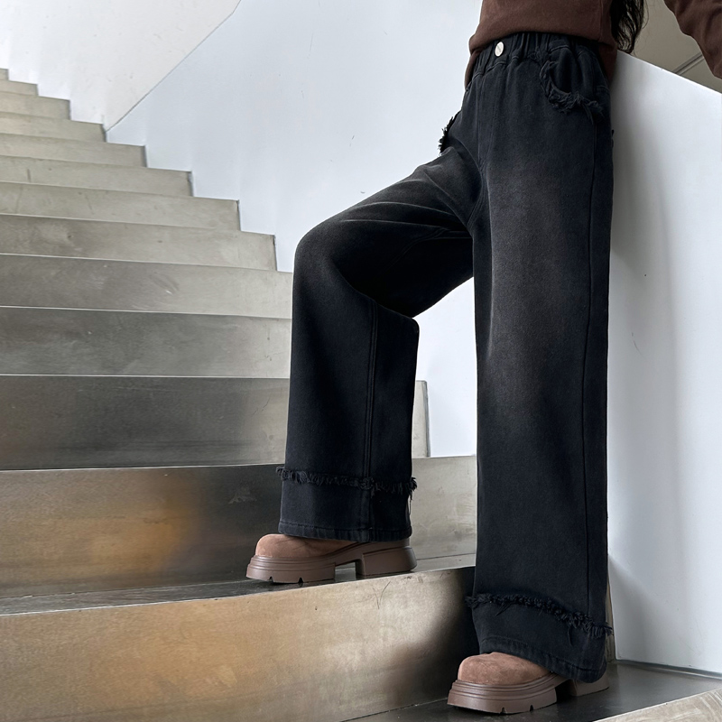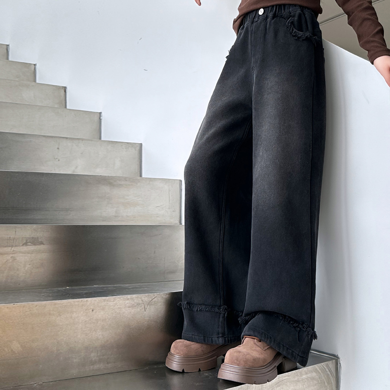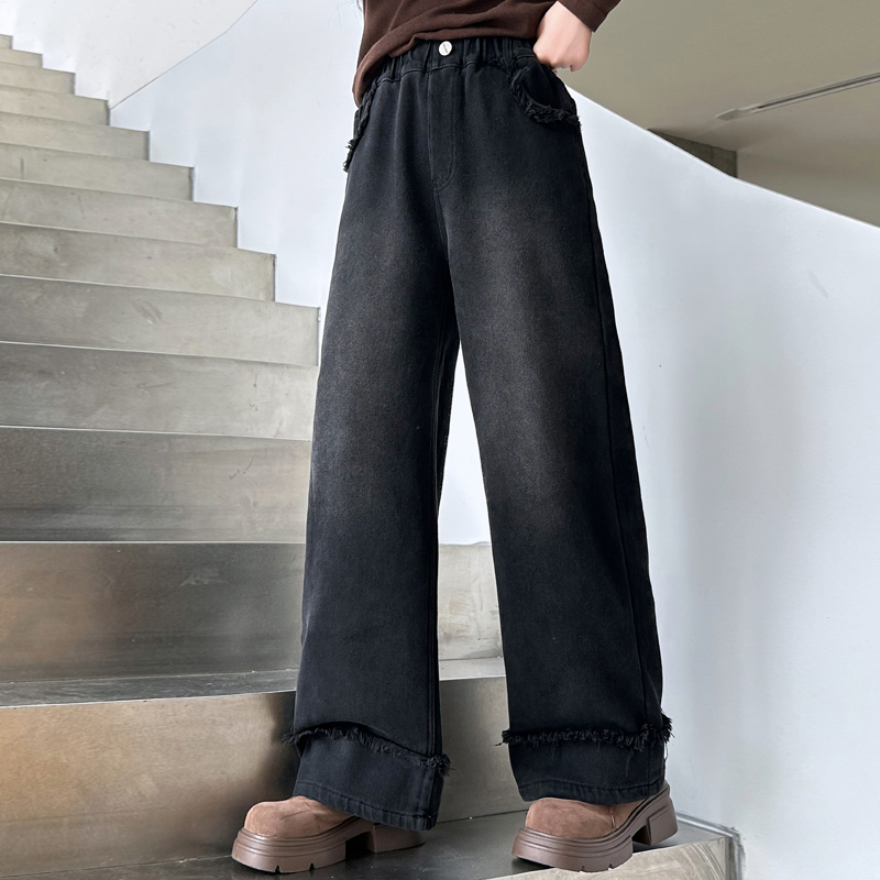 冬季 女童加绒牛仔裤 子大童少女阔腿裤 儿童洋气加厚裤 秋冬2025新款