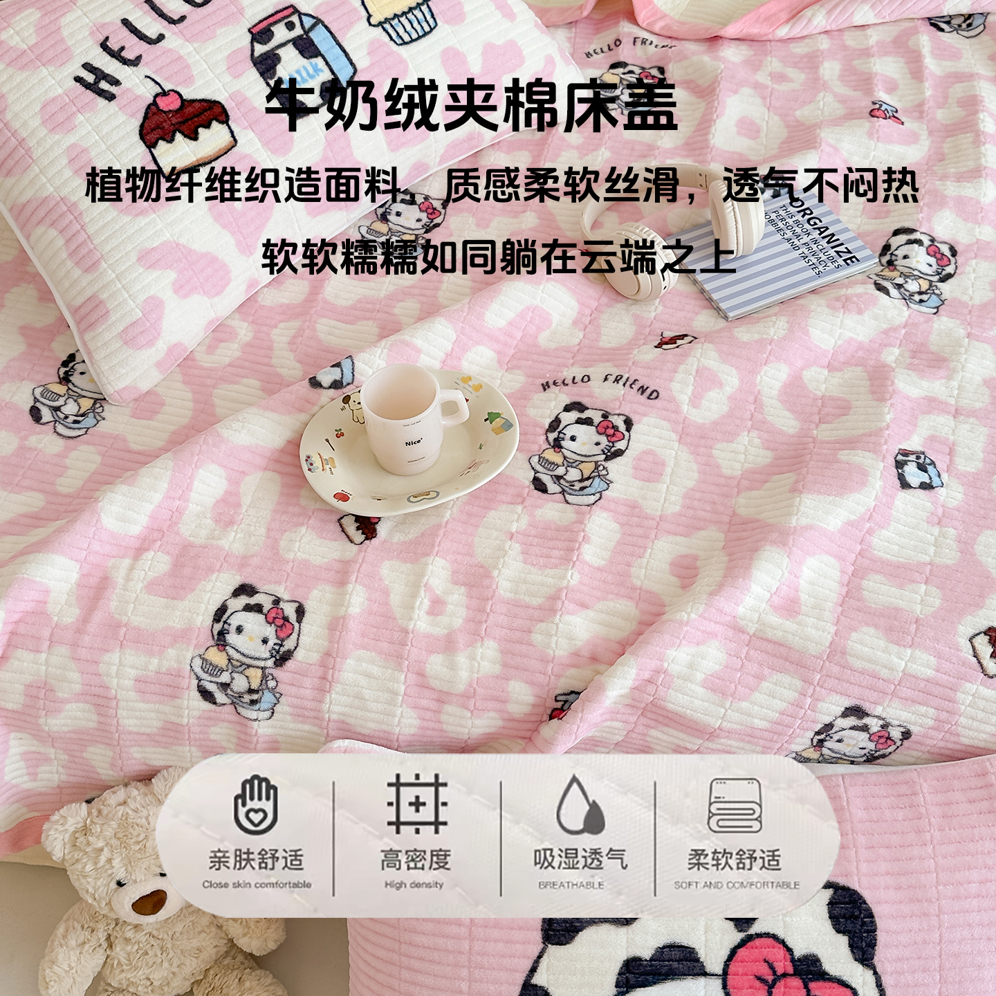 牛奶绒床盖单件2025新款 加厚夹棉珊瑚绒榻榻米花边床单三件套 冬季
