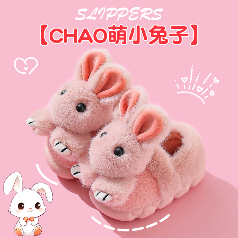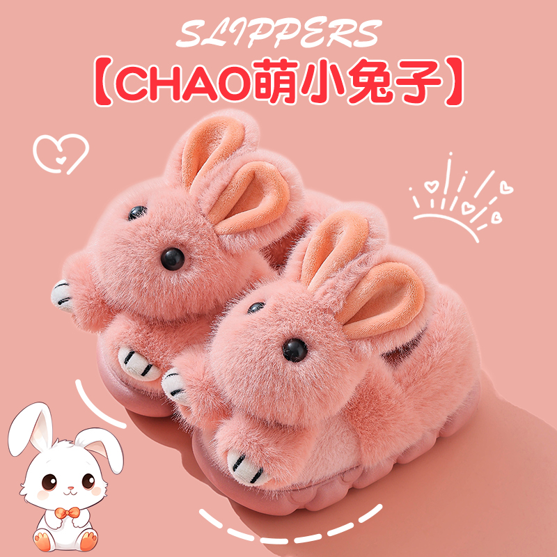 男保暖 卡通可爱防滑室内居家亲子宝宝毛毛拖鞋 儿童棉拖鞋 女童冬季
