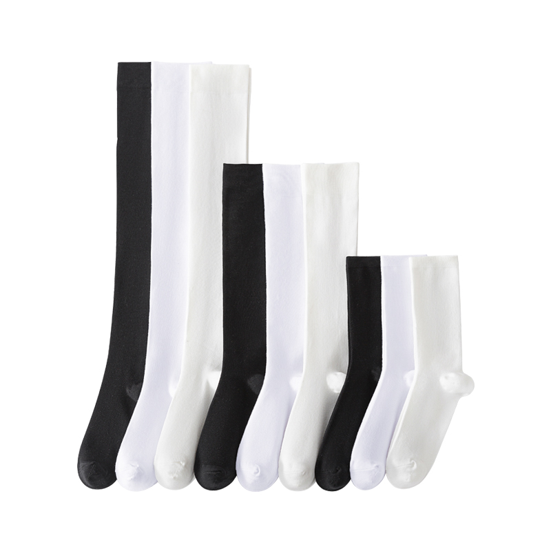 运动长筒袜 无骨抗菌防臭黑白色夏薄款 袜子女款 纯棉中筒袜春秋季