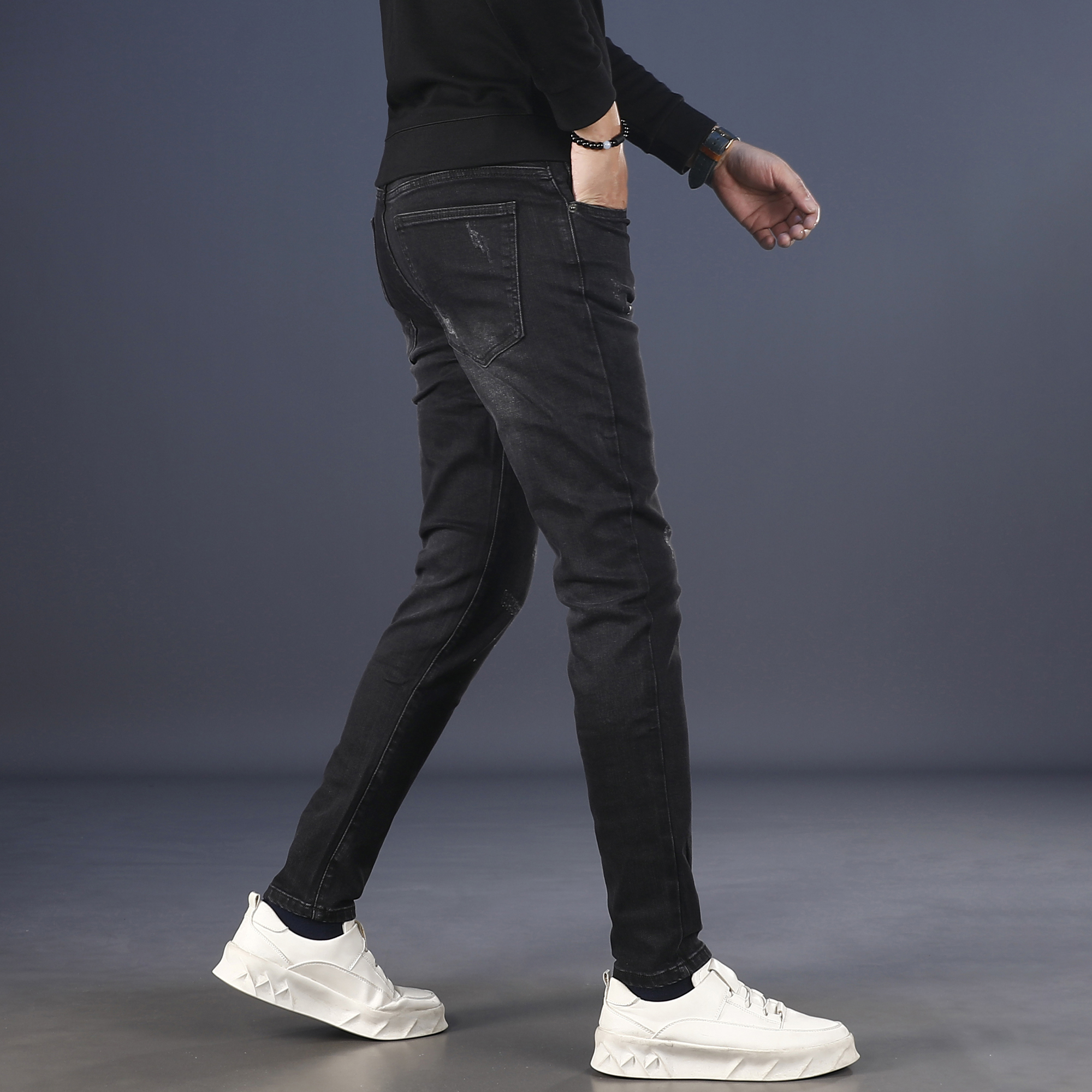 显瘦潮流裤 名士鲨2025秋冬款 百搭休闲修身 男时尚 子 黑色小脚牛仔裤