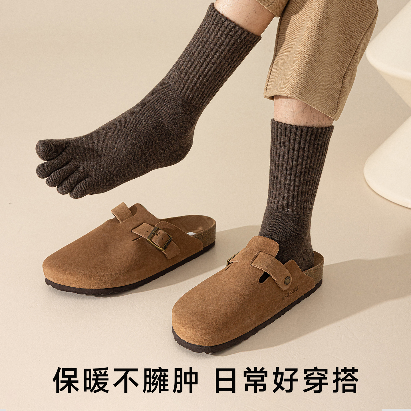 分趾袜配勃肯鞋 中筒加厚保暖抗菌防臭男士 秋冬季 羊毛五指袜子男款