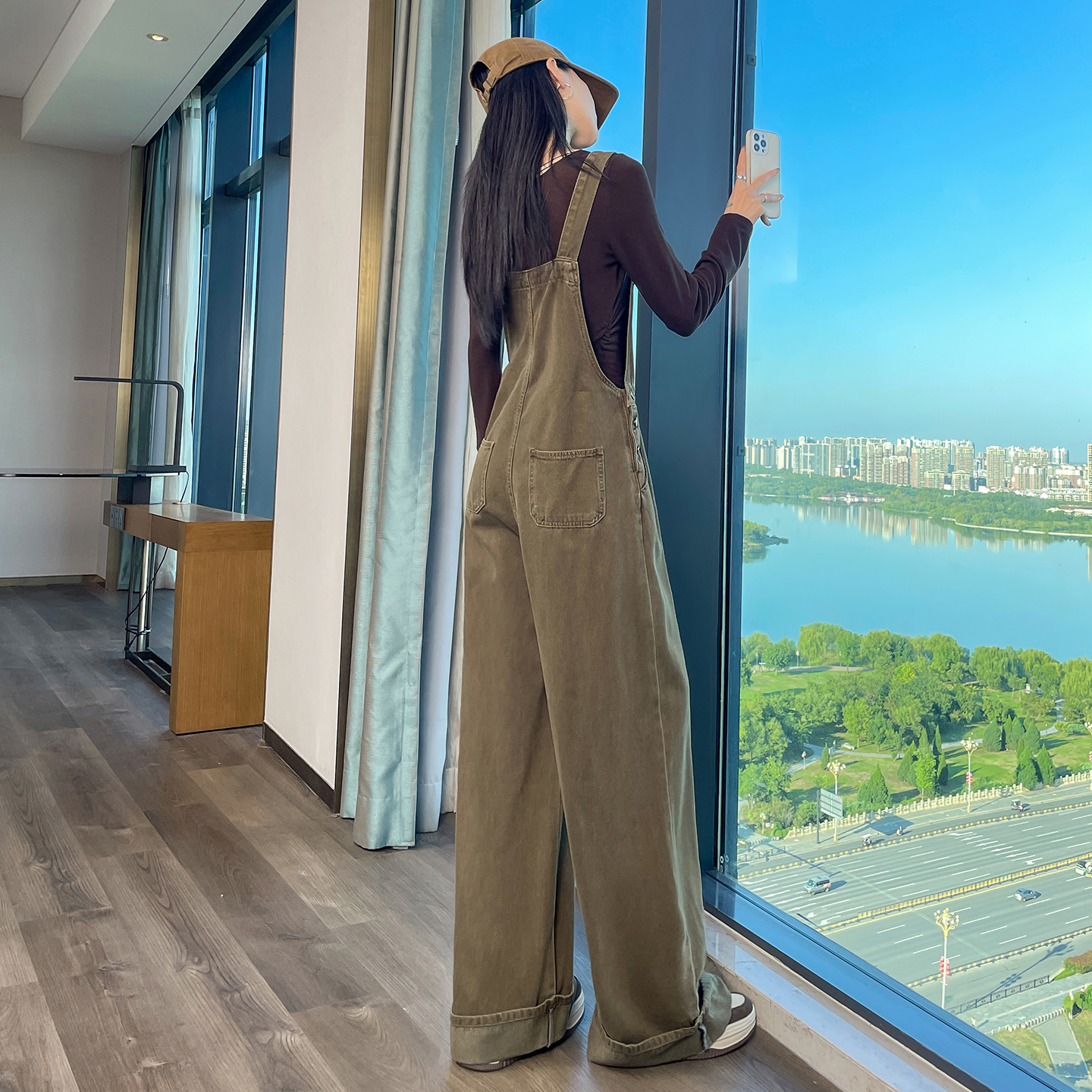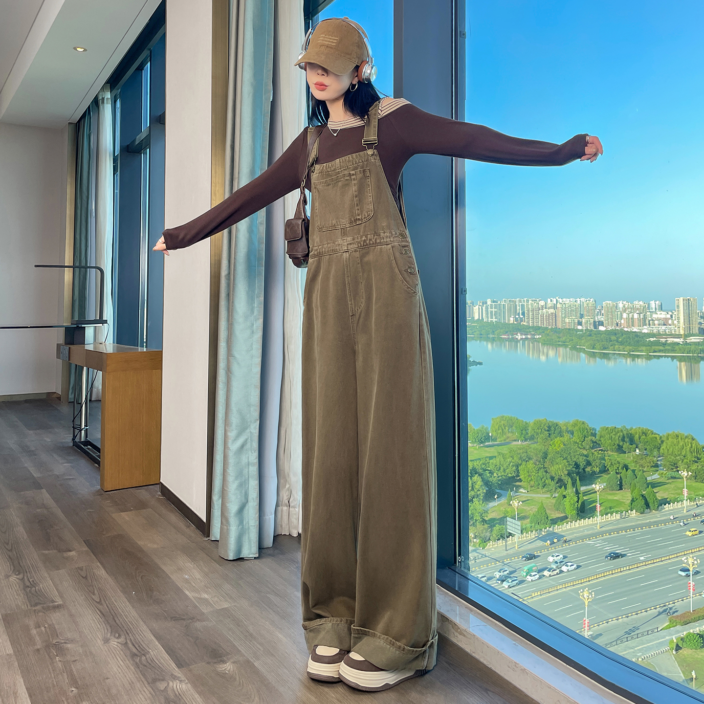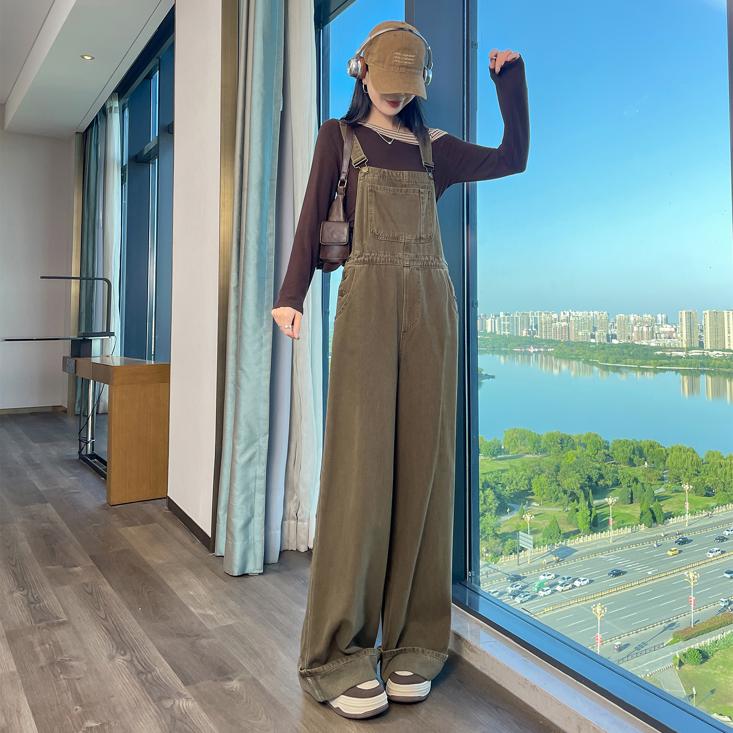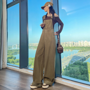 高腰显瘦宽松休闲连体裤 女春秋2025新款 阔腿裤 减龄卷边牛仔背带裤