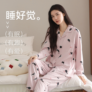 带胸垫春秋家居服套装 粉色纯棉女士长袖 2025新款 Pinksea睡衣女款