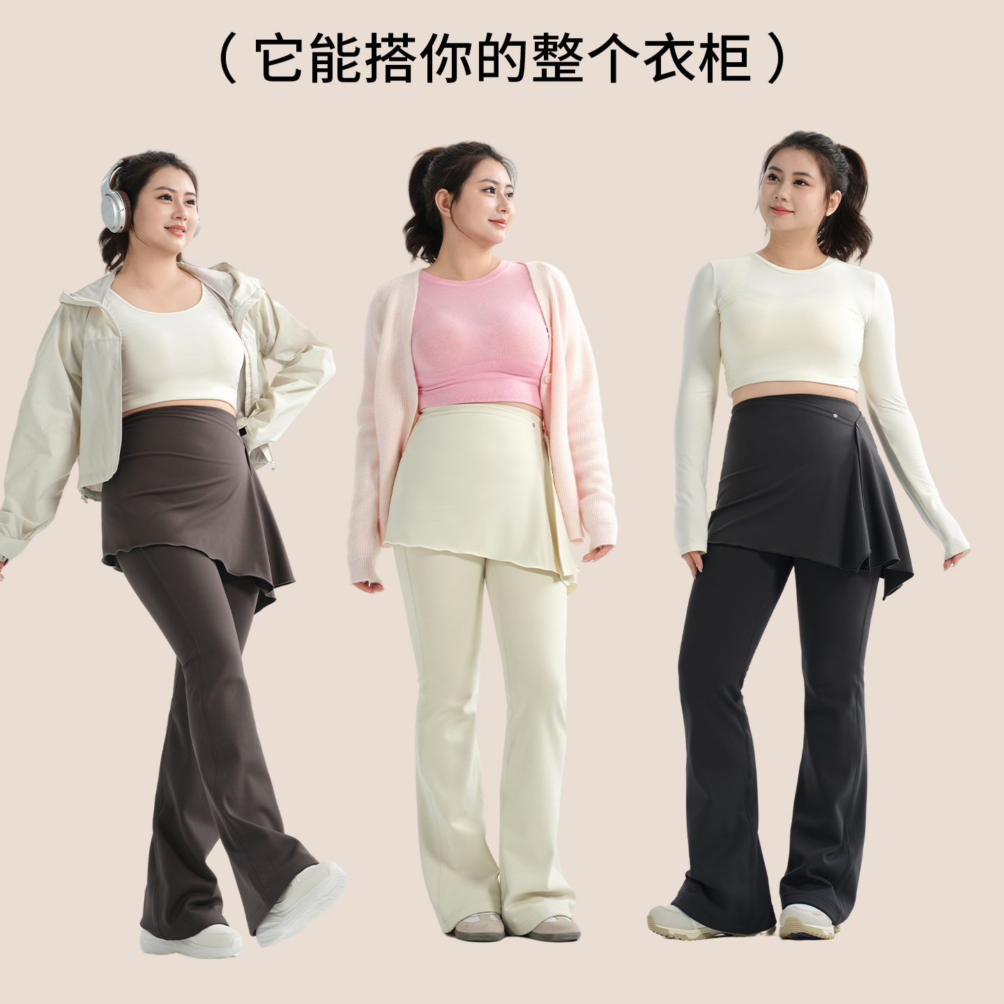 胖mm运动健身喇叭裤 带屁帘遮臀加绒微喇瑜伽裤 女秋冬加长舞蹈大码