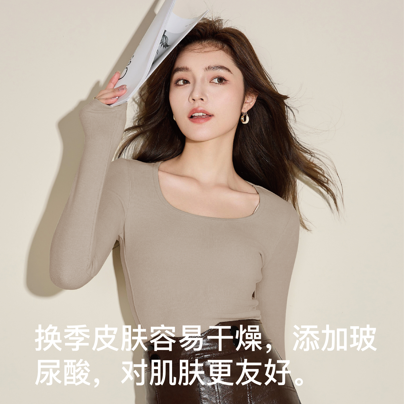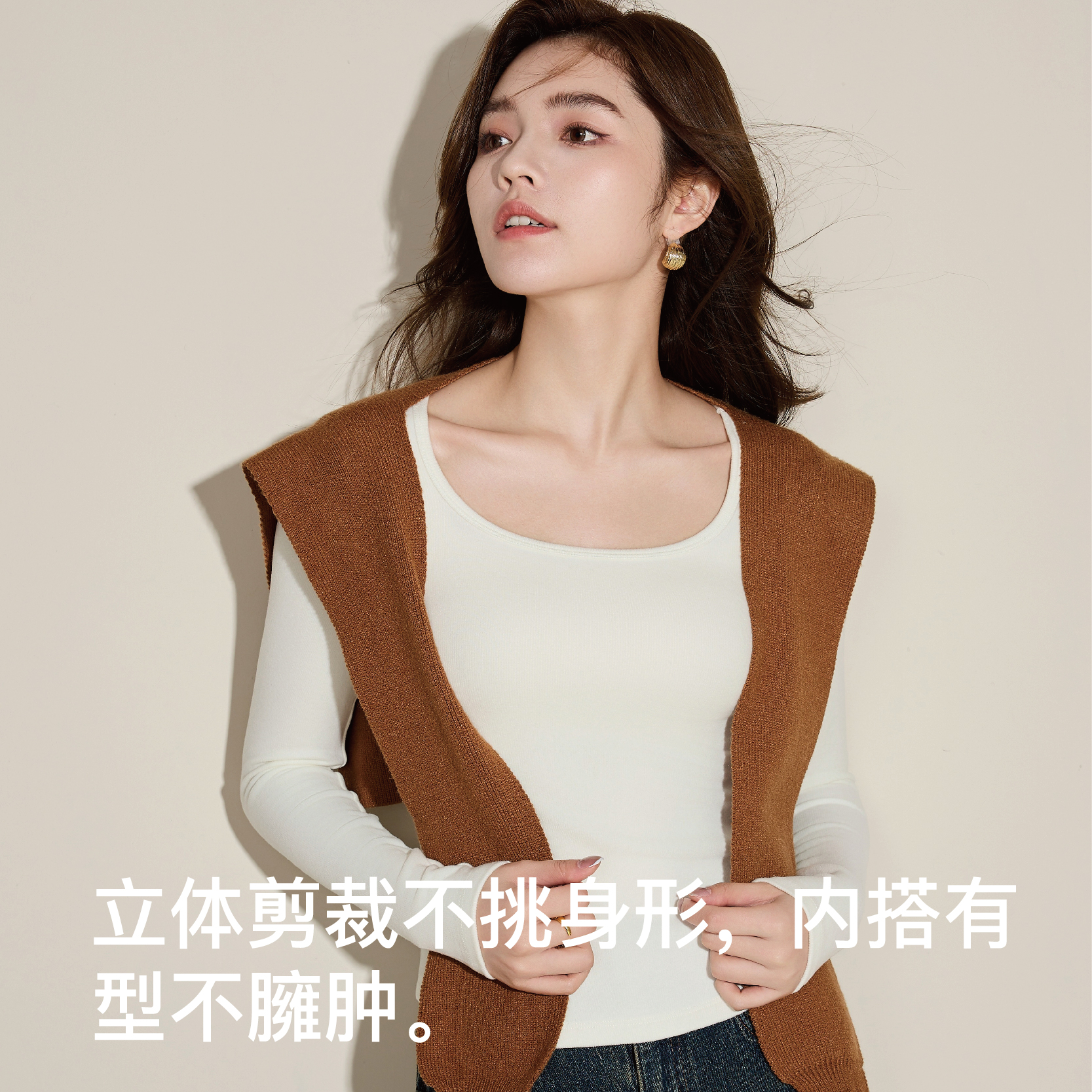 显瘦长袖 内搭秋冬外穿修身 T恤上衣 女2025新款 黑色方领绒德打底衫