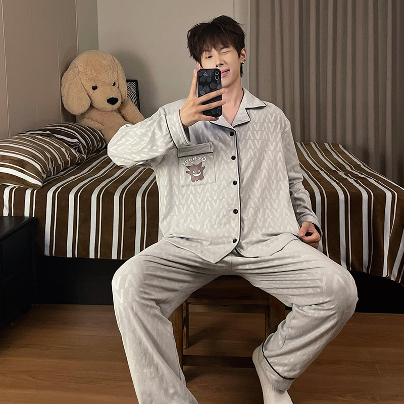 长裤 冬季 保暖长袖 德绒翻领开衫 两件套可外穿家居服 睡衣男2025新款