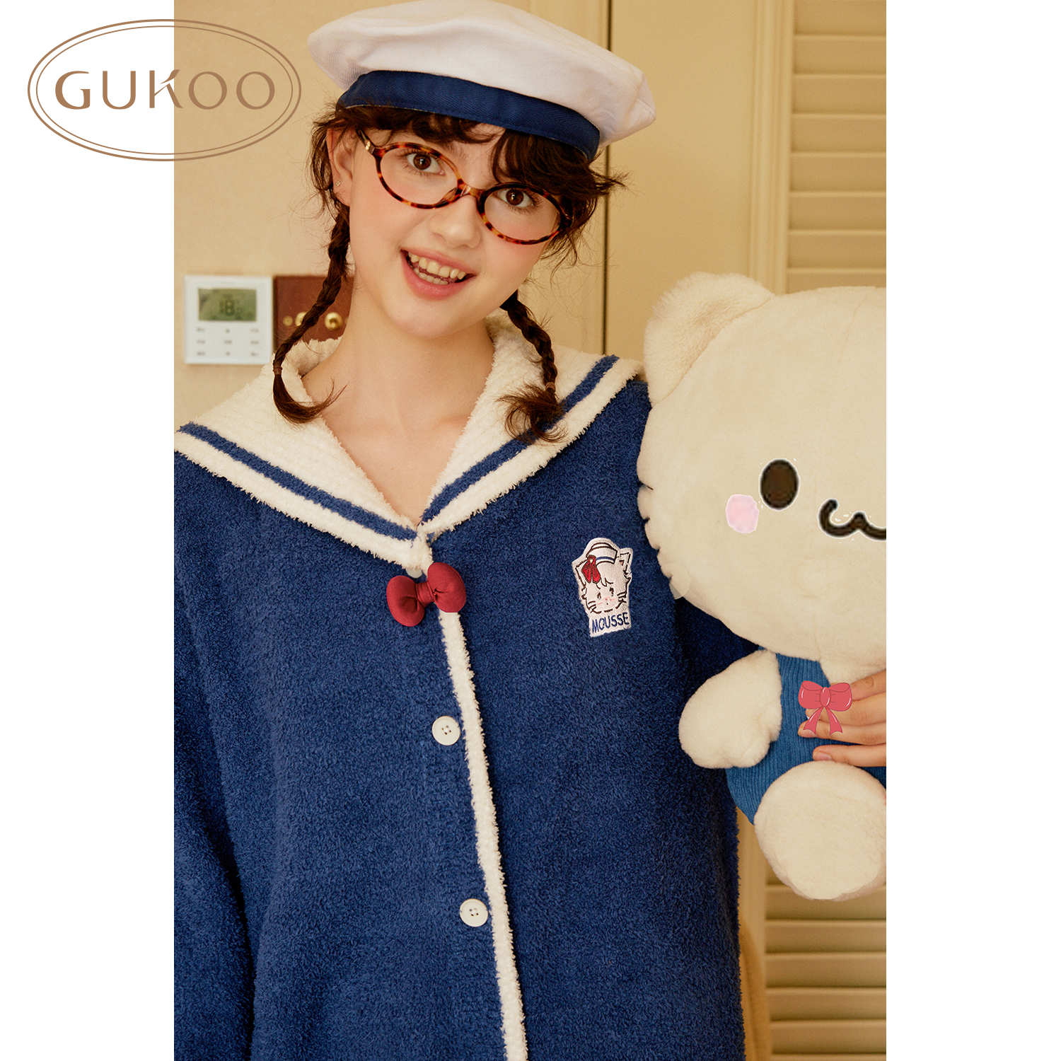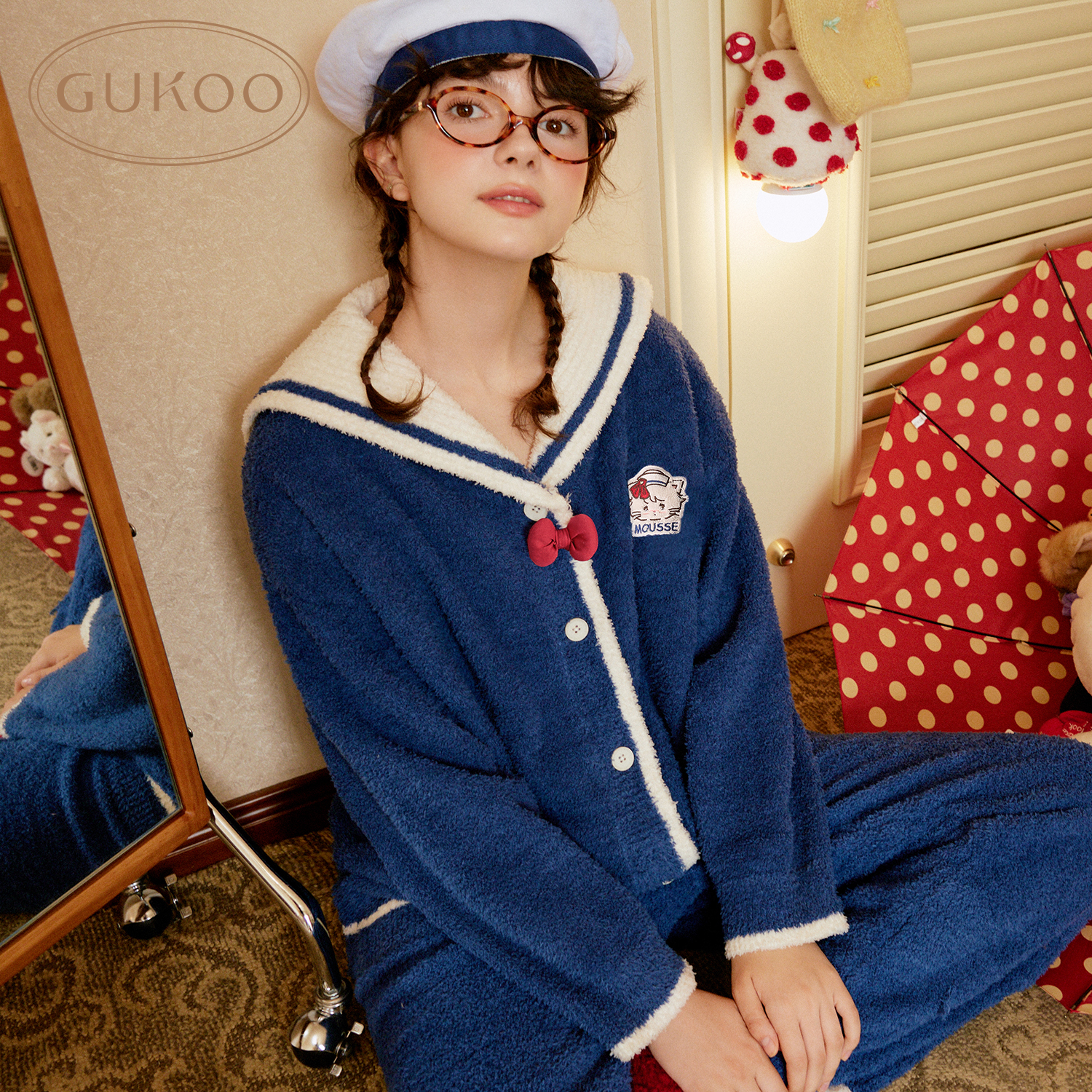 半边绒保暖女士家居服套装 mikko联名新款 果壳睡衣女冬季 Gukoo
