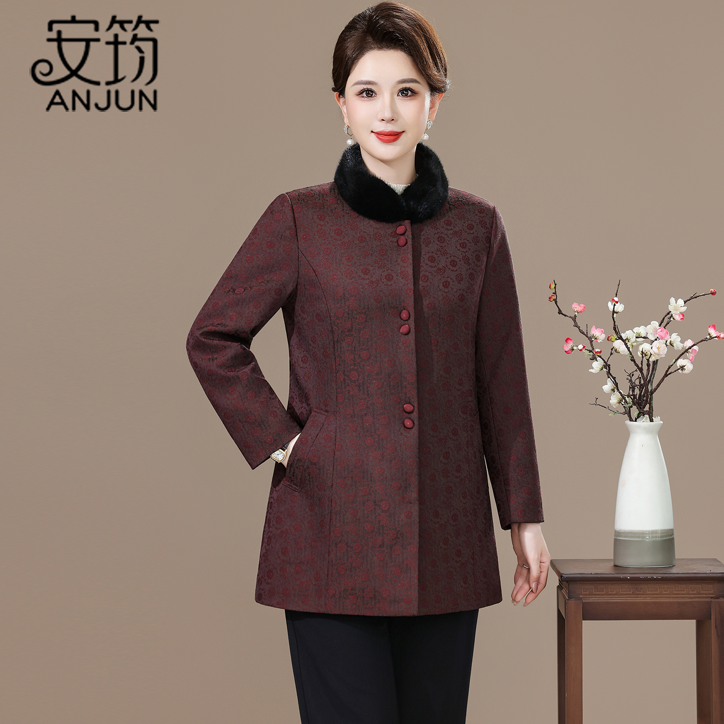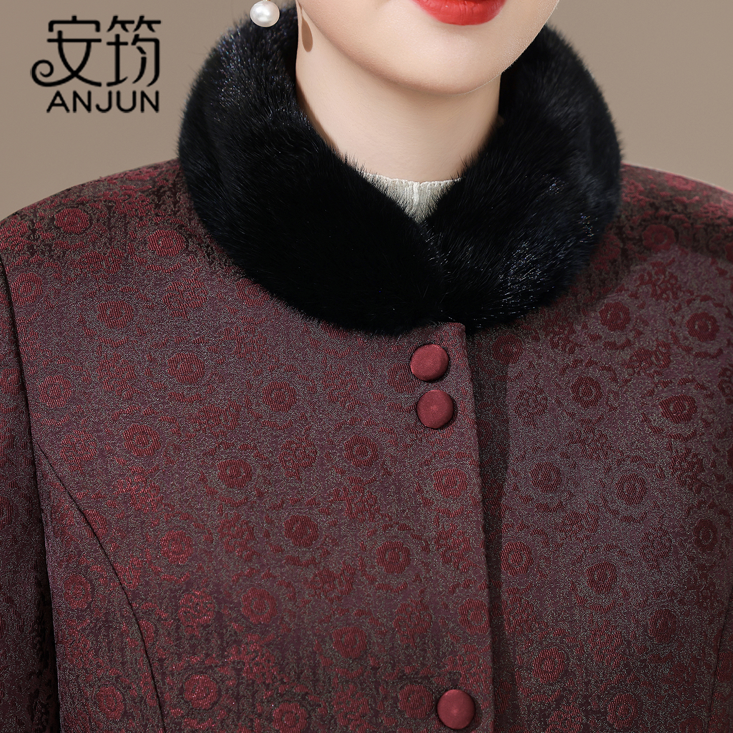 气质中老年妈妈外套 大码 高端白鹅绒立领羽绒服中长款 女2025冬新款
