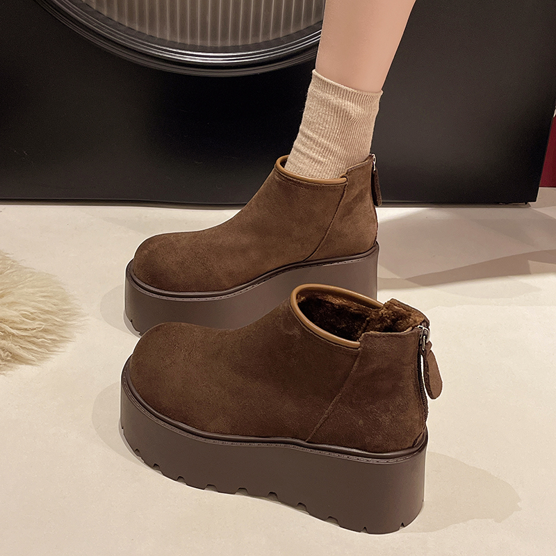 加绒靴子美拉德 冬季 达芙妮堆堆短靴女2025新款 秋冬厚底马丁靴女款