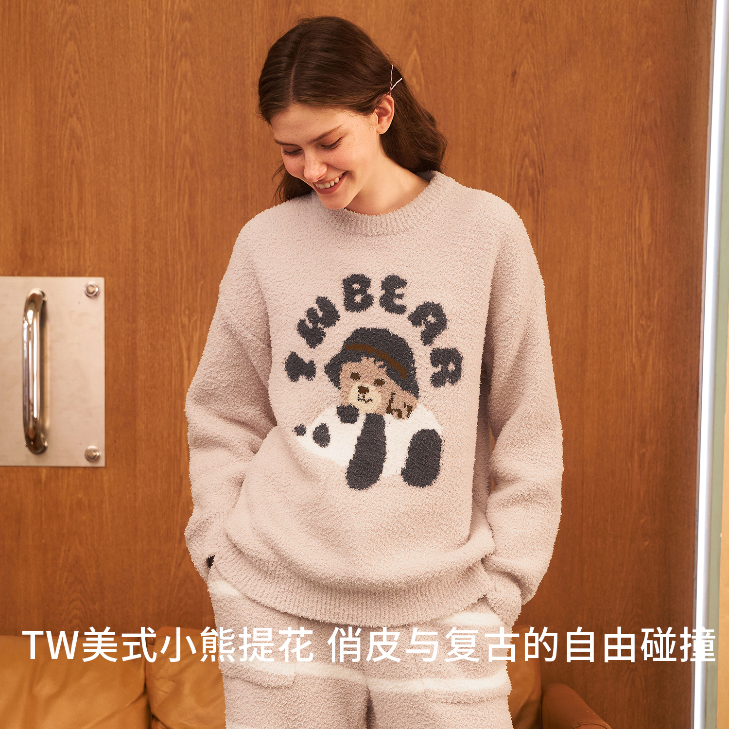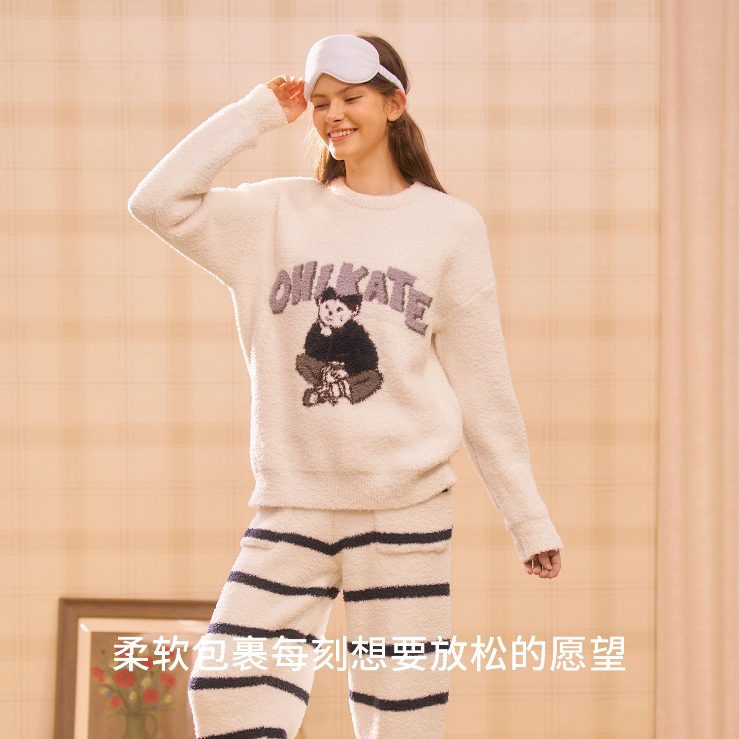 家居服套装 长袖 女高级时尚 睡衣新款 半边绒 秋季 WildRooms明星同款