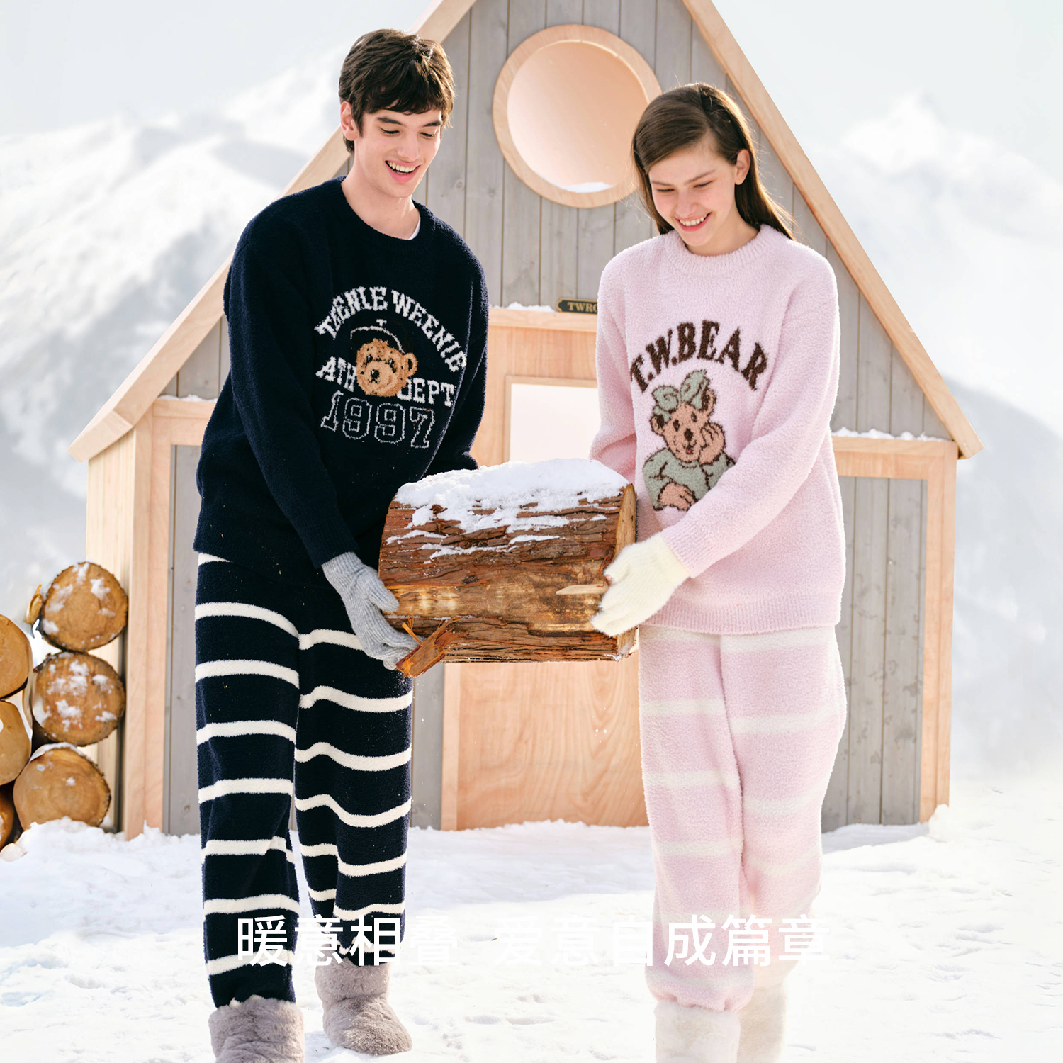 半边绒翻领保暖家居服套装 yso 新款 情侣睡衣女秋冬季 定金预售