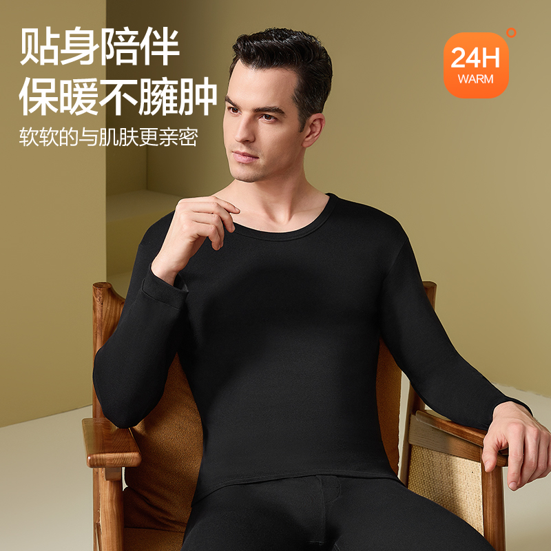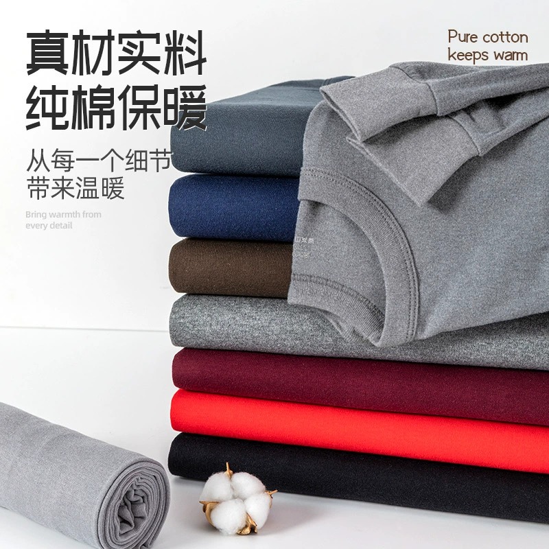 秋冬季 秋衣秋裤 男士 衬裤 两件套发热 打底全棉毛衫 纯棉保暖内衣套装