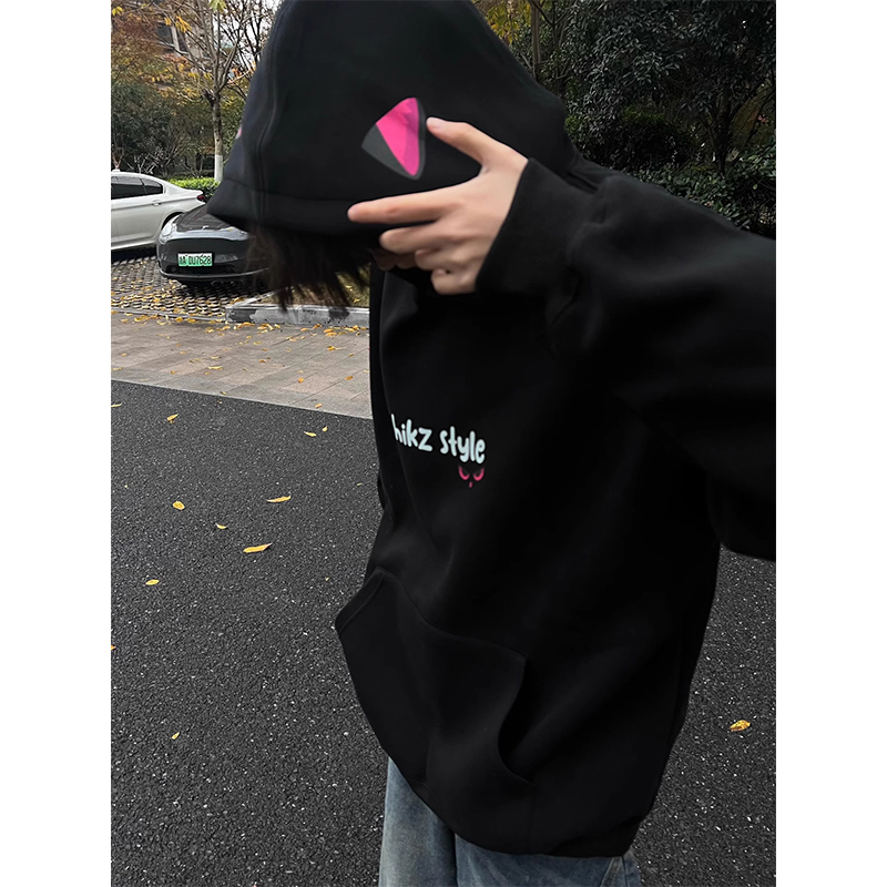 青少年外套2 高街小恶魔印花连帽卫衣男女秋冬新款 特大码 300斤美式