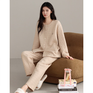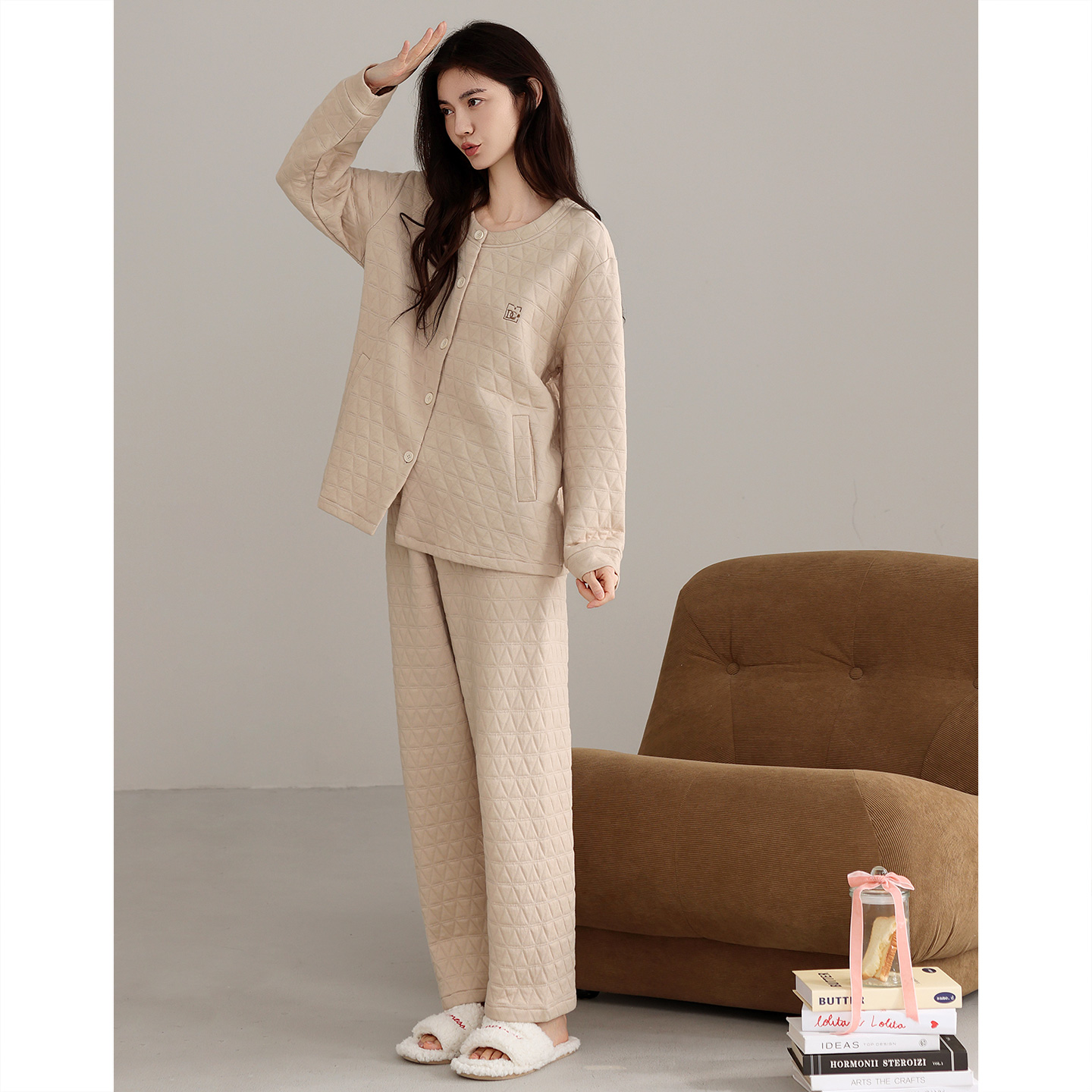 海岛绒可外穿家居服 简约薄款 睡衣女秋冬季 保暖珊瑚绒女士睡衣套装