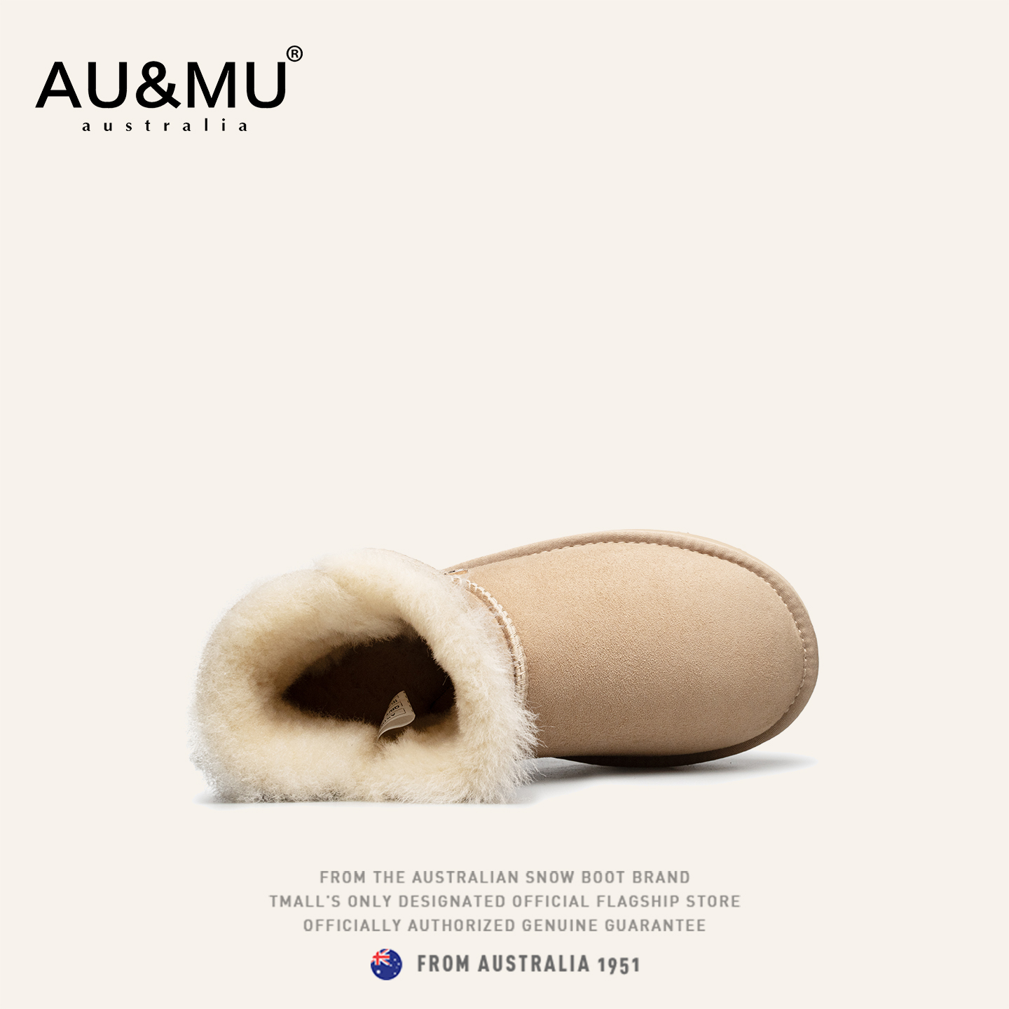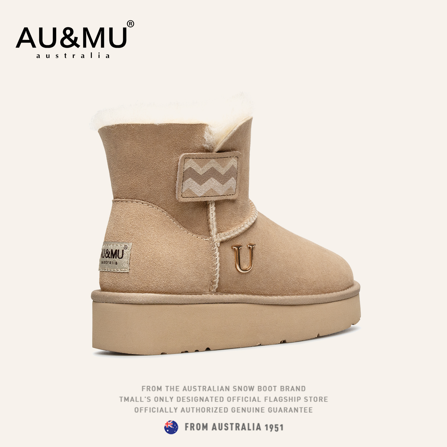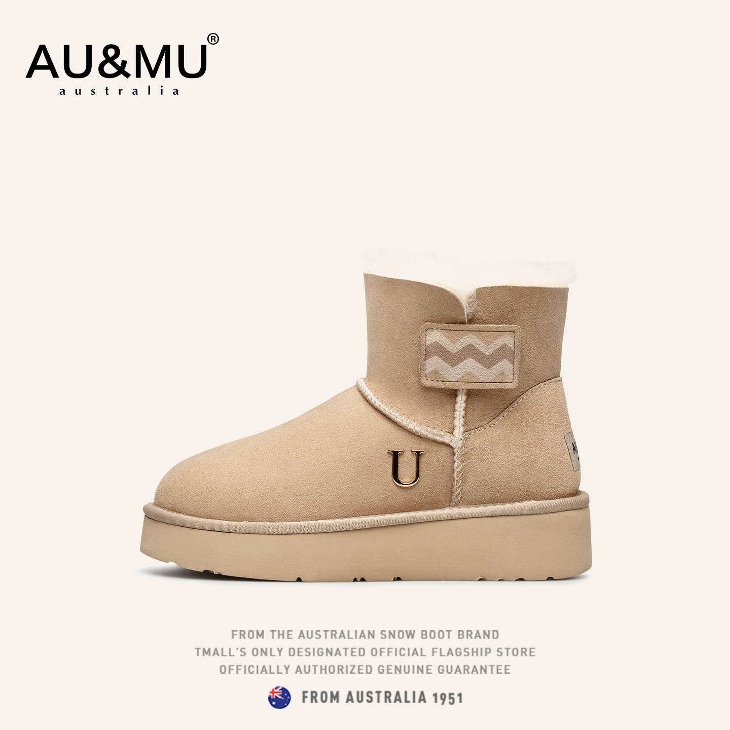 子母扣厚底防滑保暖短靴子 雪地靴女皮毛一体时尚 AUMU2025冬季 新品
