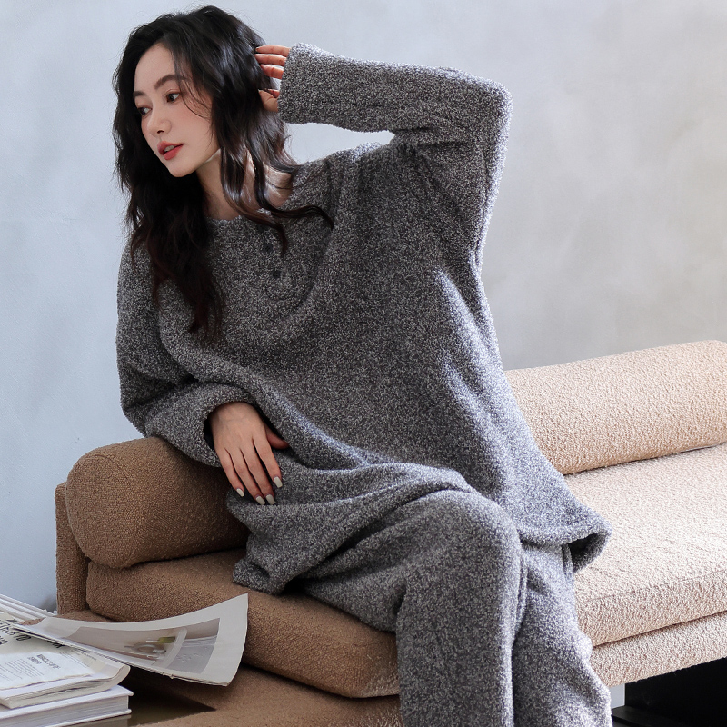 珊瑚绒保暖加厚加绒家居服圆领套头套装 半边绒睡衣女士秋冬季 冬款