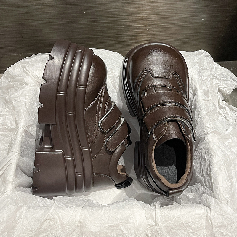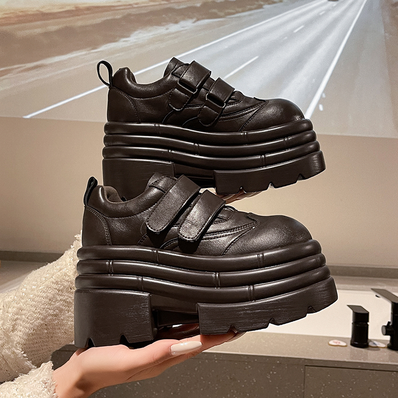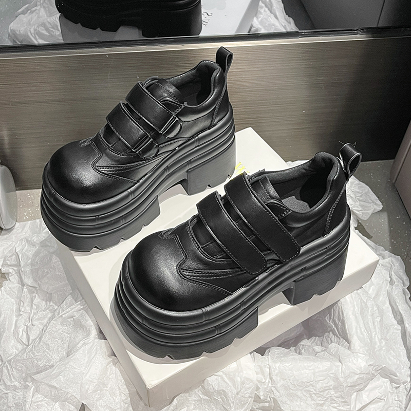 小皮鞋 小个子增高厚底英伦风乐福鞋 女圆头超高跟魔术贴玛丽珍单鞋