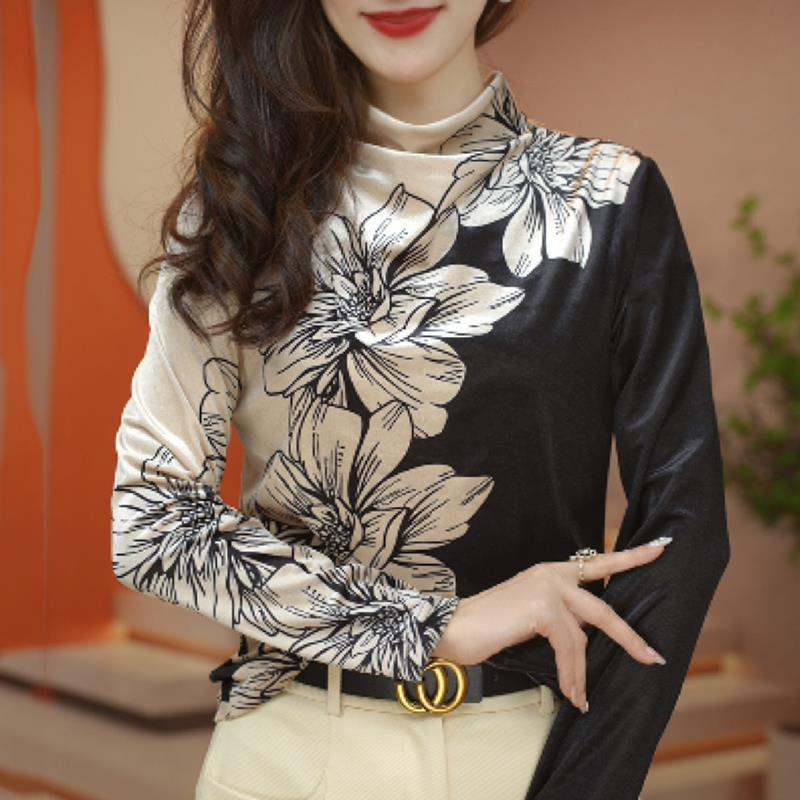 半高领洋气t恤小衫 2025年新款 内搭上1012z 女士装 秋冬金丝绒打底衫