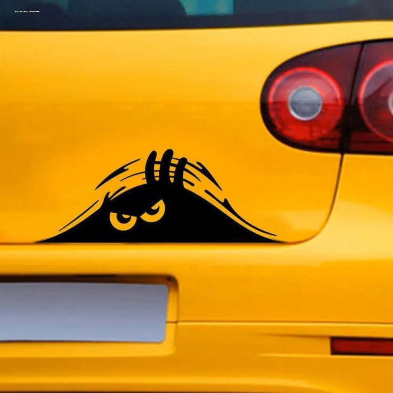 汽车后备箱盖车贴羞涩小野兽偷瞄小怪物划痕遮挡车身趣味装 饰贴纸