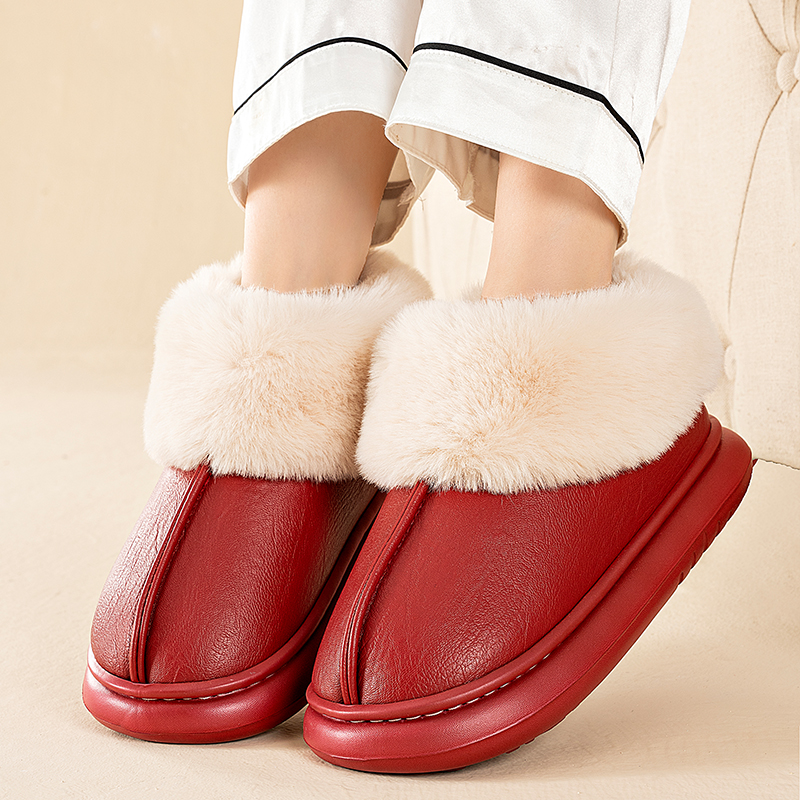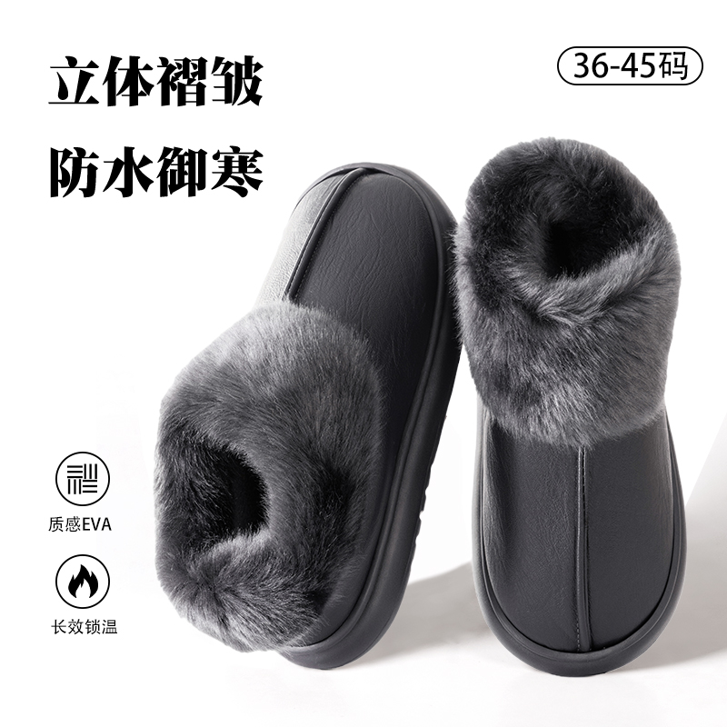 女款 老人防水棉拖鞋 保暖全包跟老年皮棉鞋 防滑加绒2025新款 女冬季